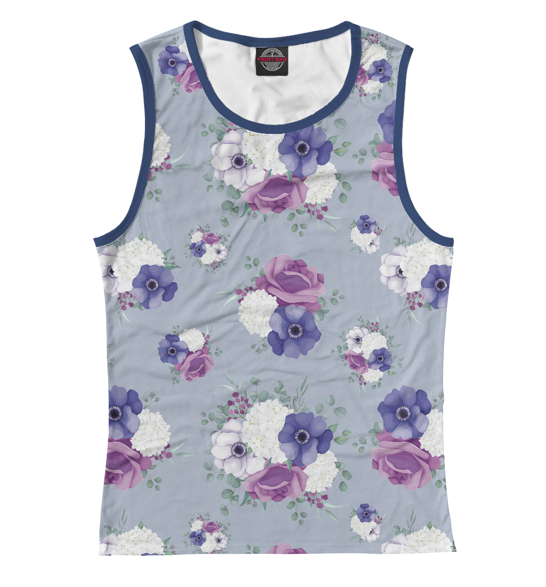 Женская майка с принтом «Бутоны на голубом»