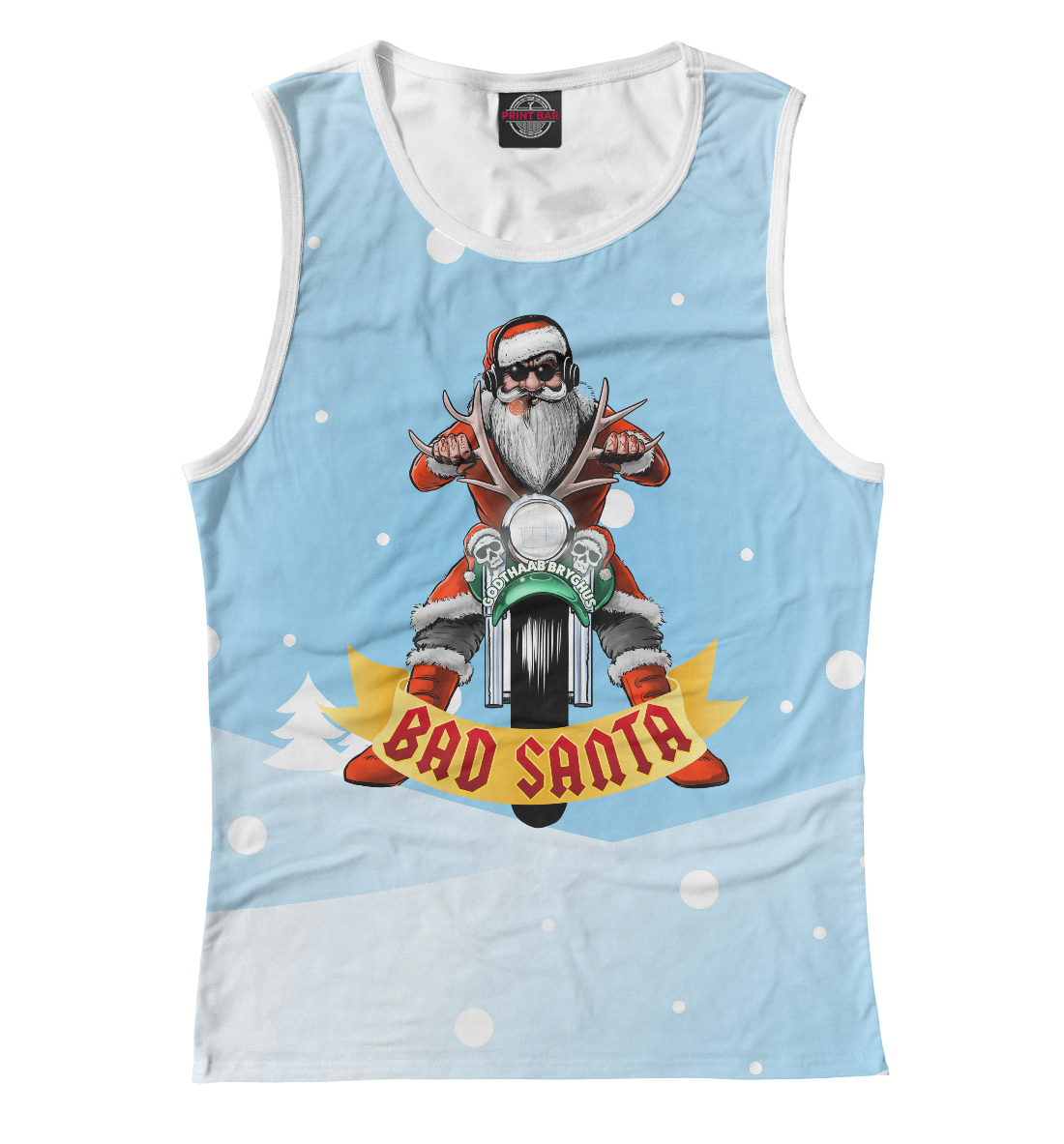 Женская майка с принтом «Дед Мороз на мотоцикле»