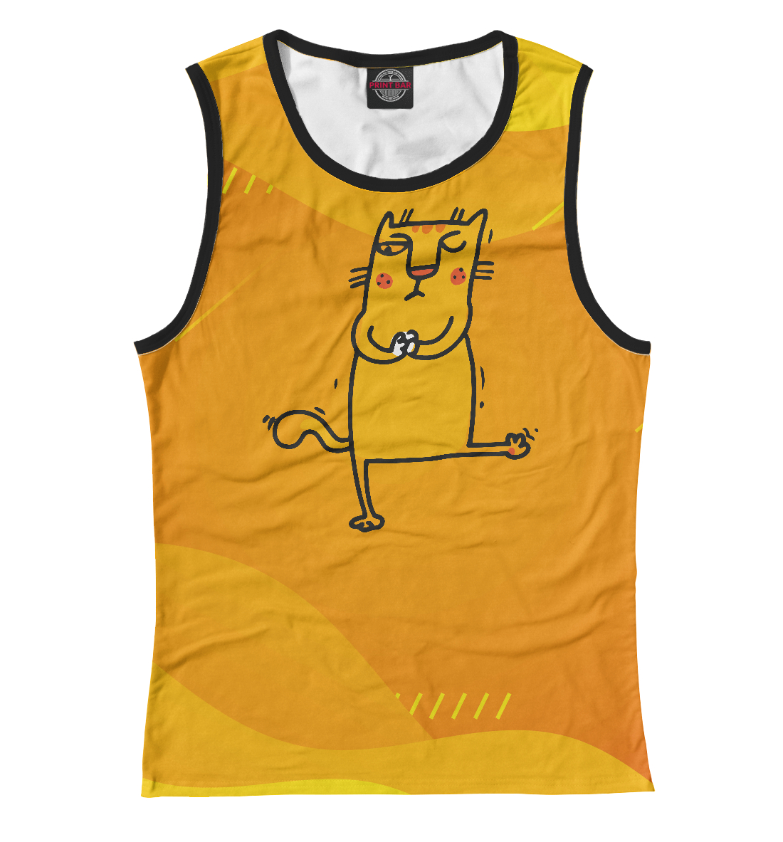 Женская майка с принтом «Хитрый желтый кот»