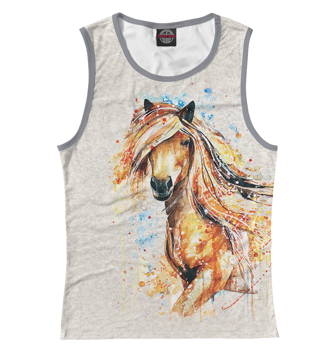 Женская майка с принтом «Конь акварель»