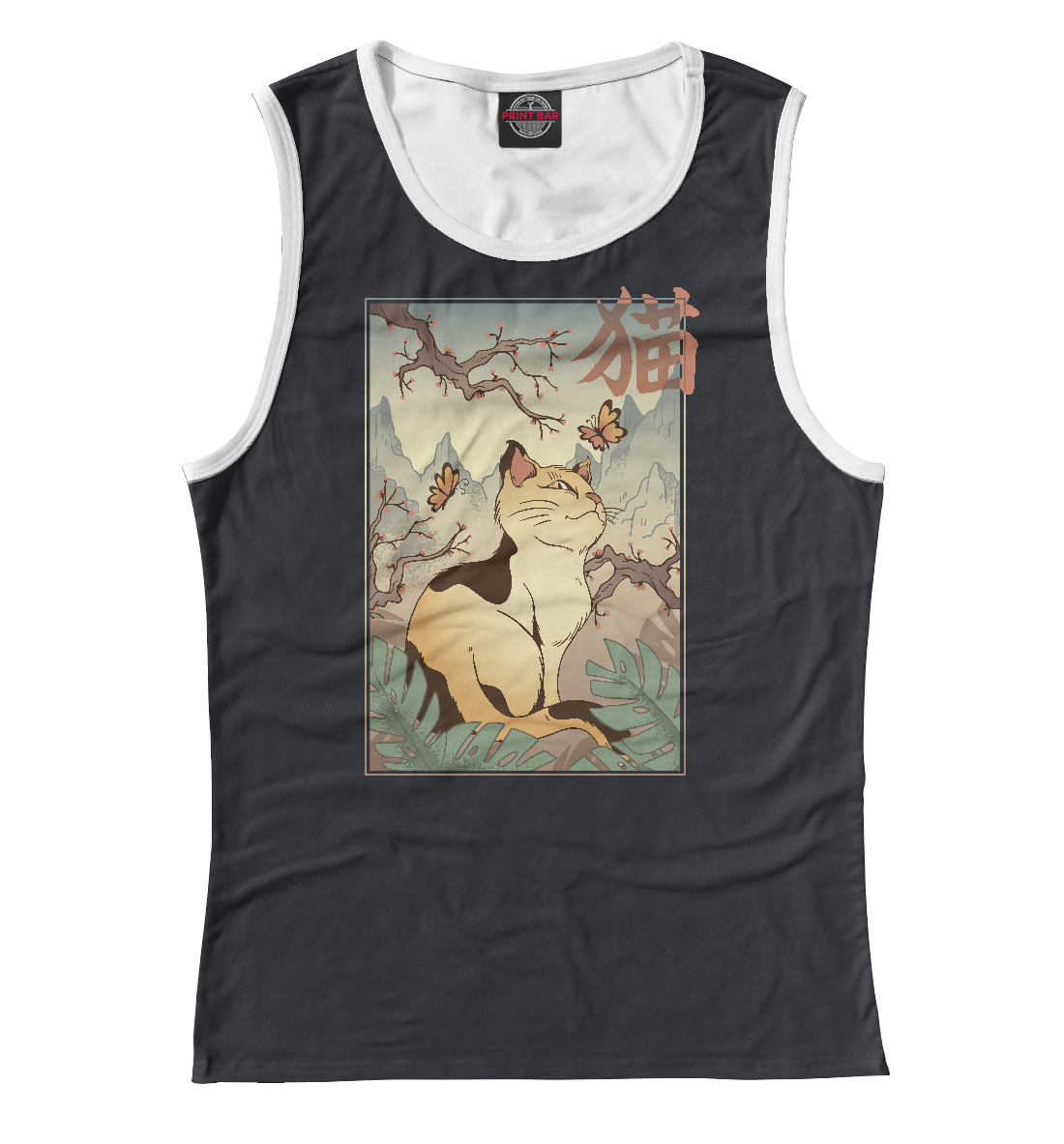 Женская майка с принтом «Пейзаж с котиком»
