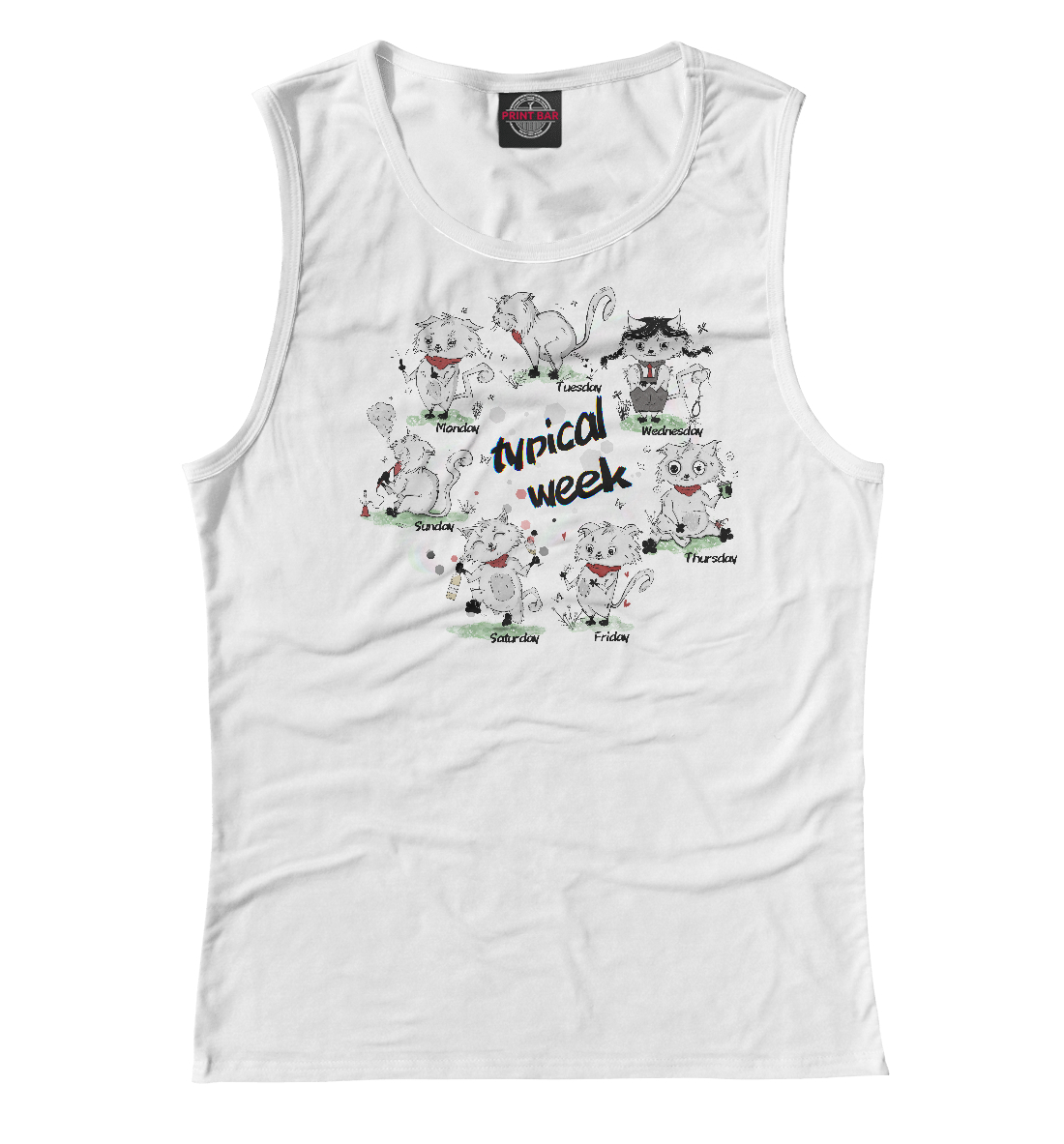 Женская майка с принтом «Типичная неделя котов»
