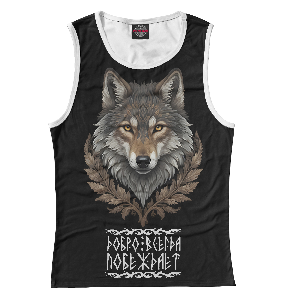 Женская майка с принтом «Волк в венце победителя - победа добра»