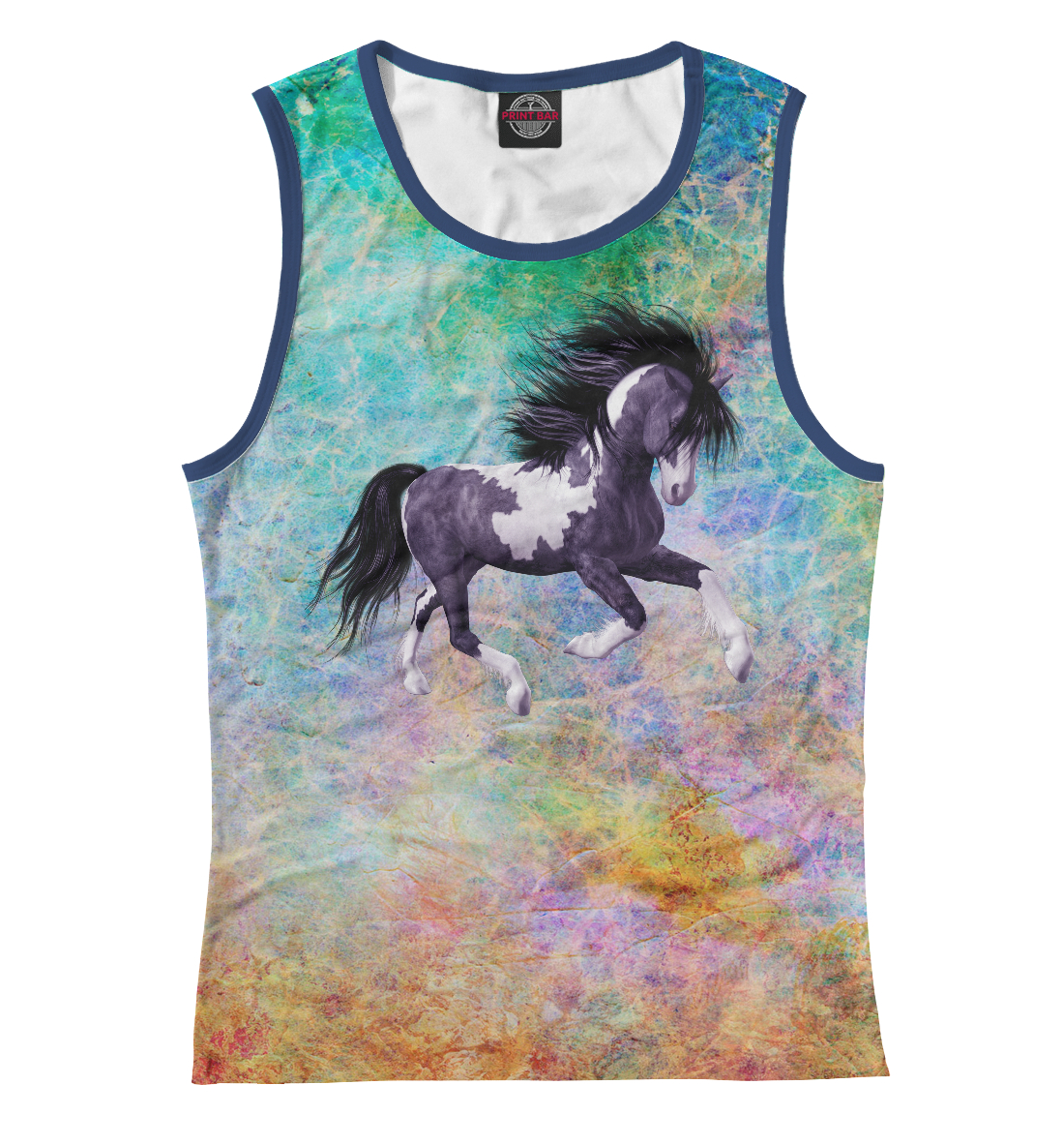 Женская майка с принтом «Черногривый скакун»