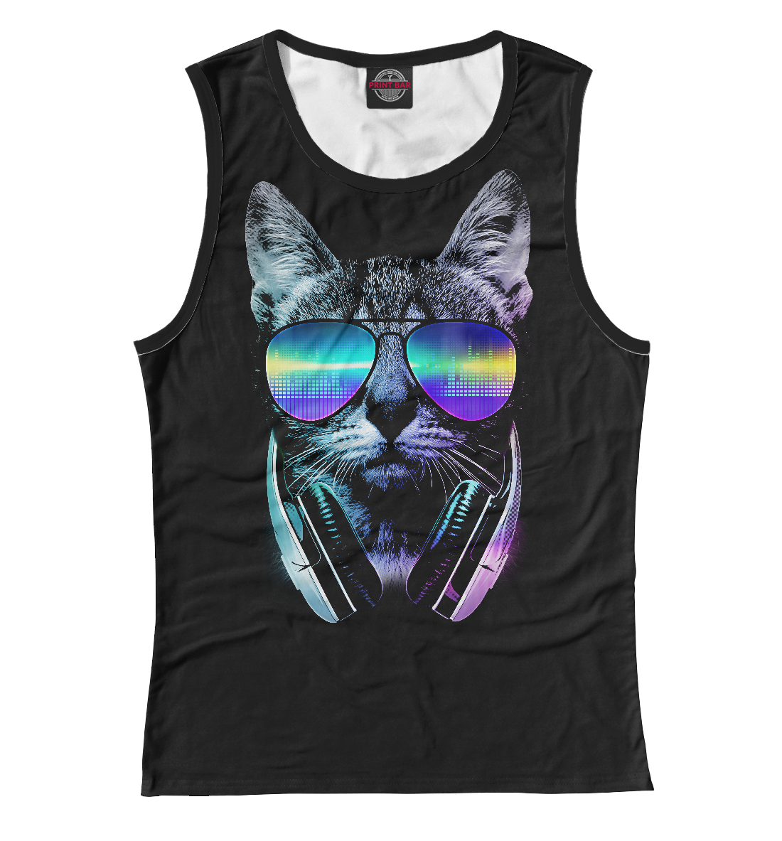 Женская майка с принтом «Кот диджей»