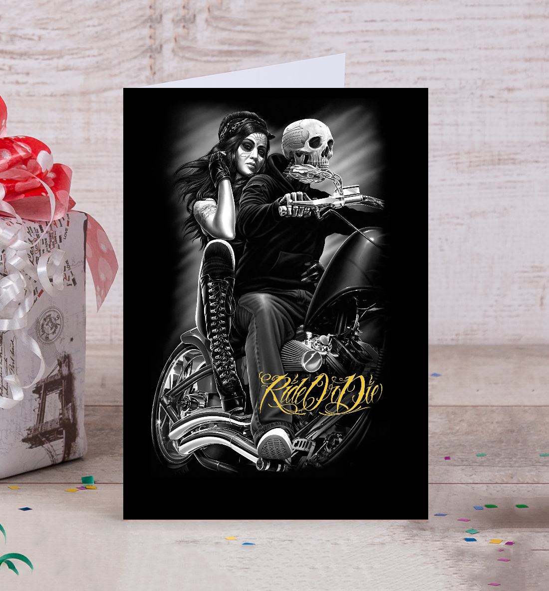 Открытка Байкер с девушкой