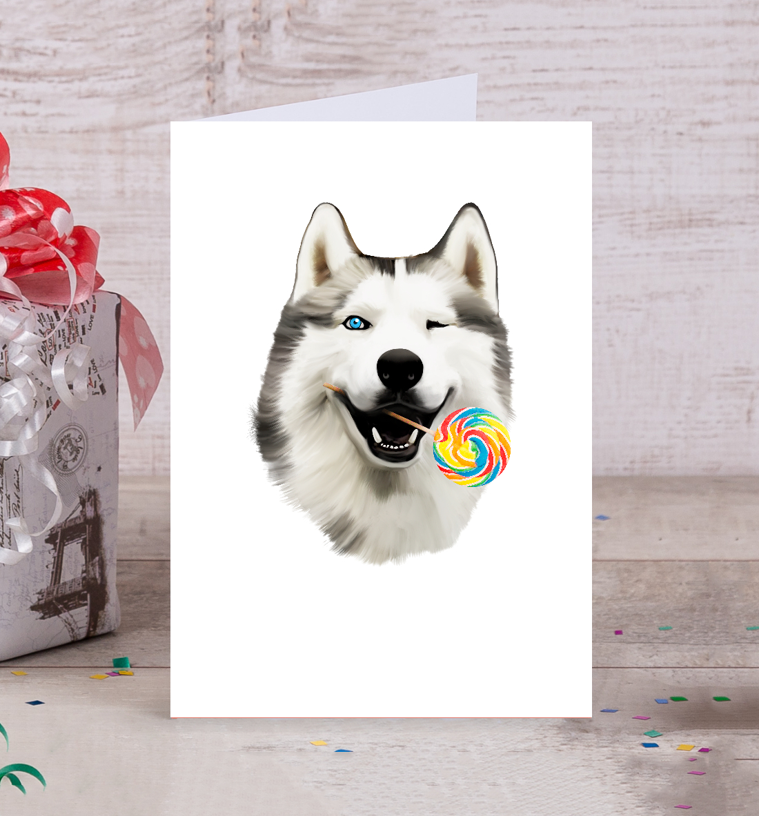 Открытка Хаски сладкоежка