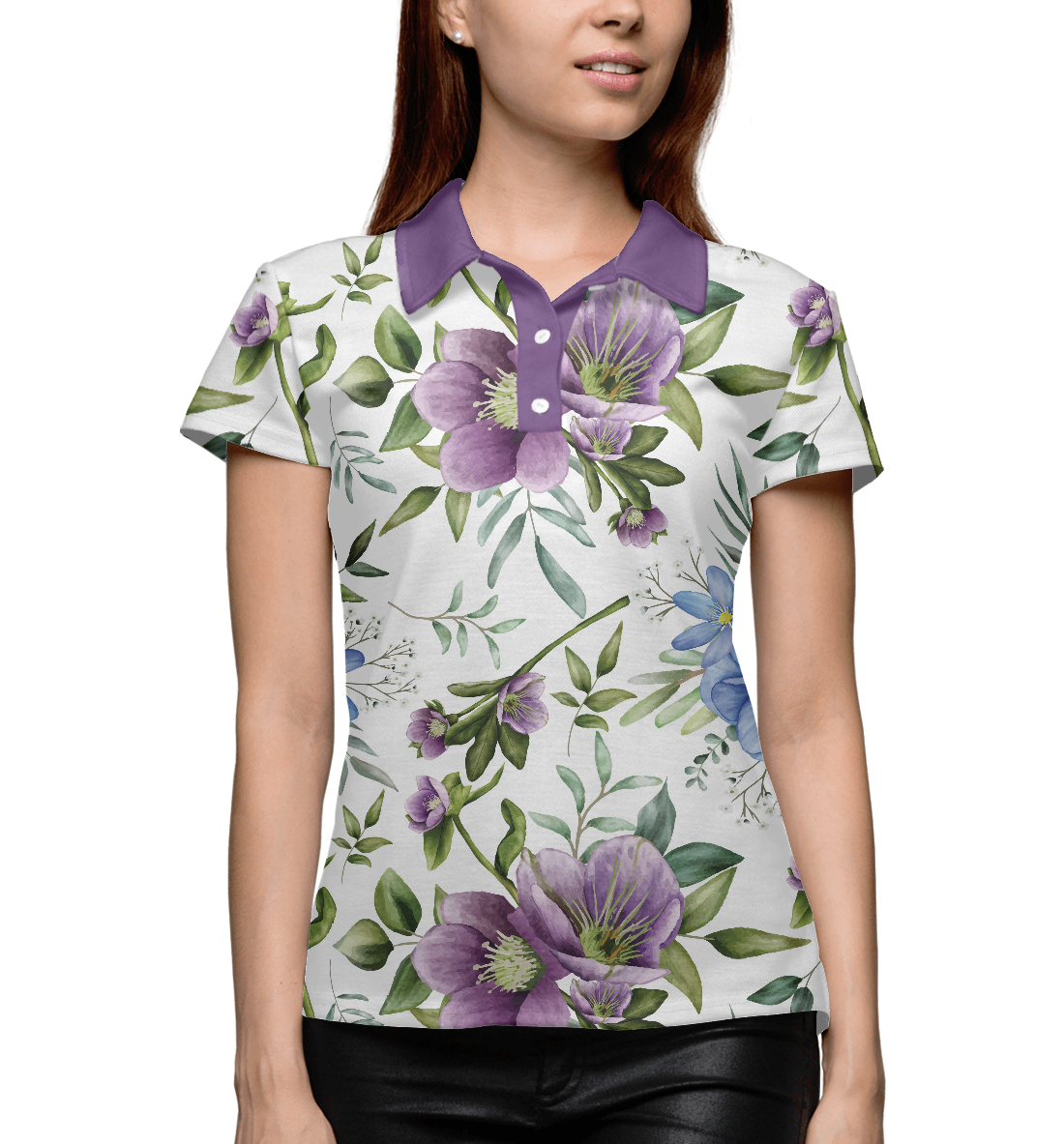 Женское поло с принтом «Акварельный букет»