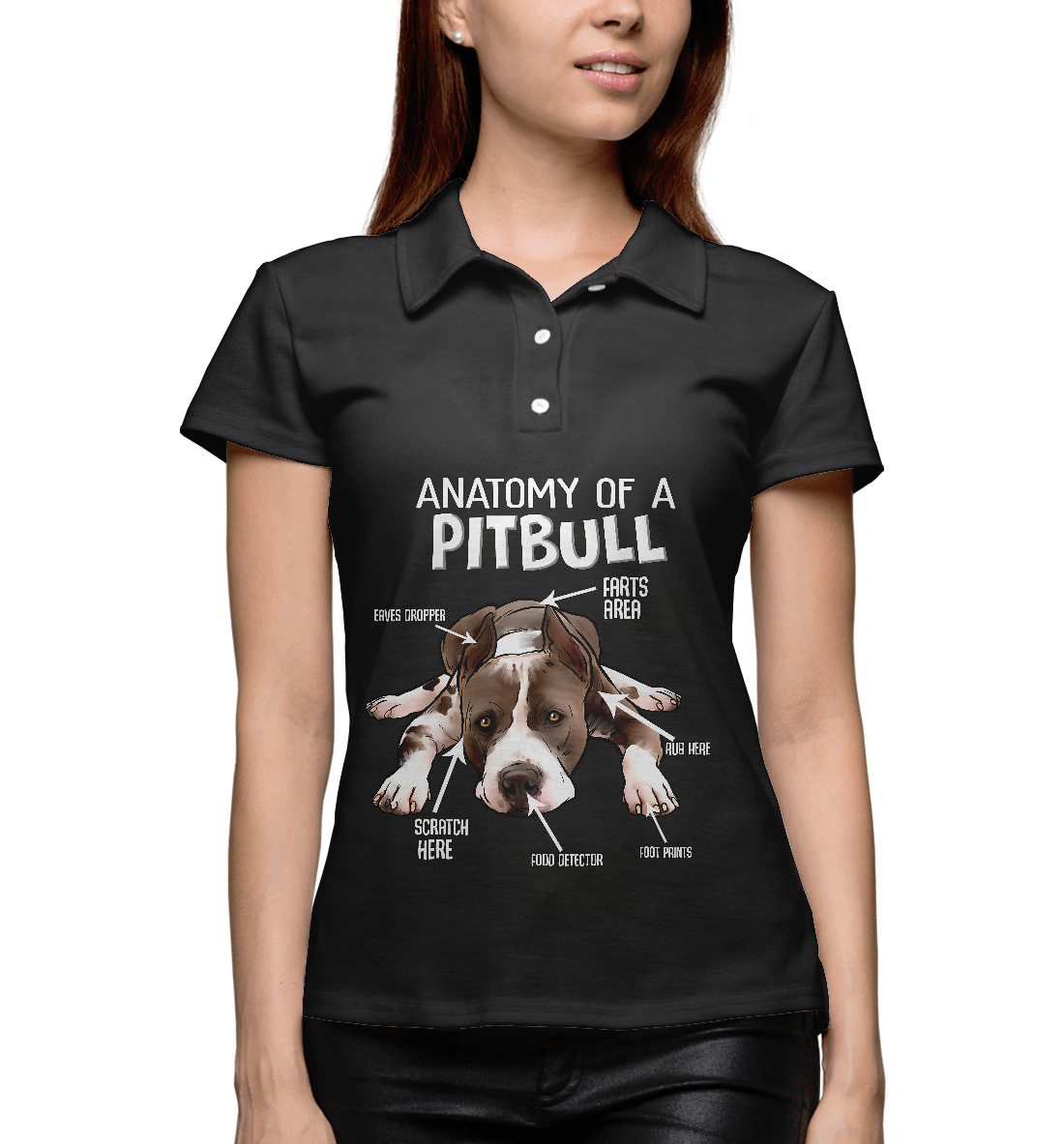 Женское поло с принтом «Анатомия Питбуля»