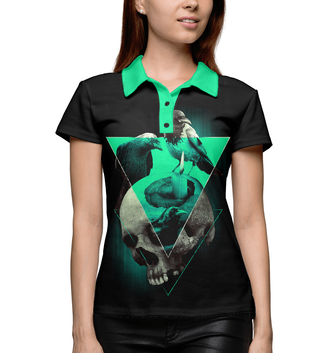 Женское поло с принтом «Череп колдуна»