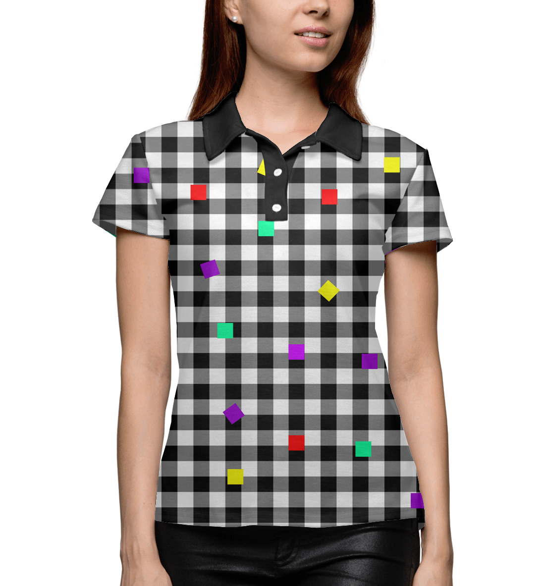 Женское поло с принтом «Черно-белая клетка и цветные квадраты»