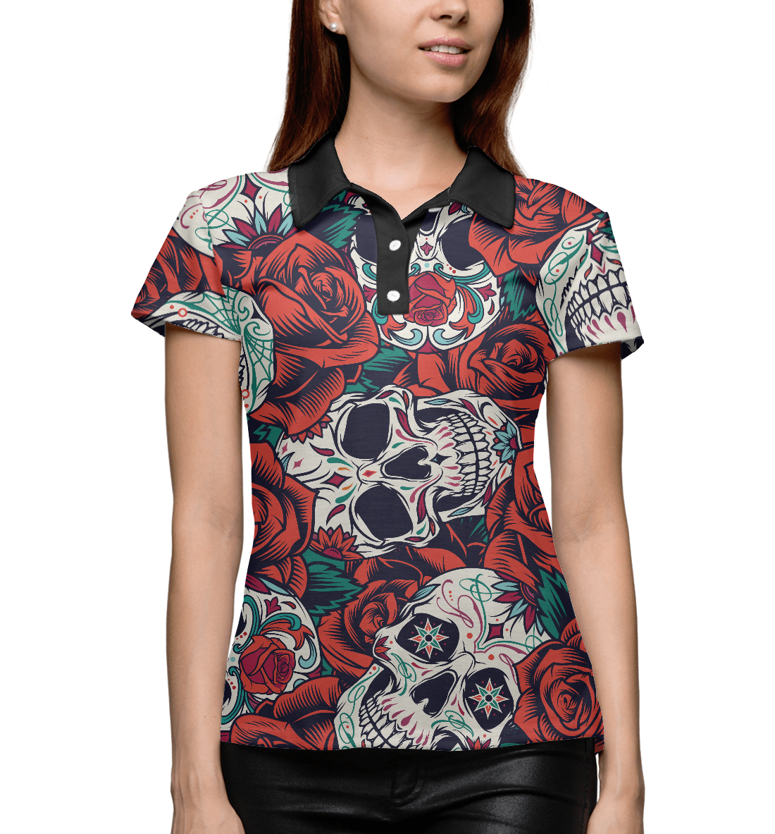 Женское поло с принтом «ЦВЕТОЧНЫЕ ЧЕРЕПА»