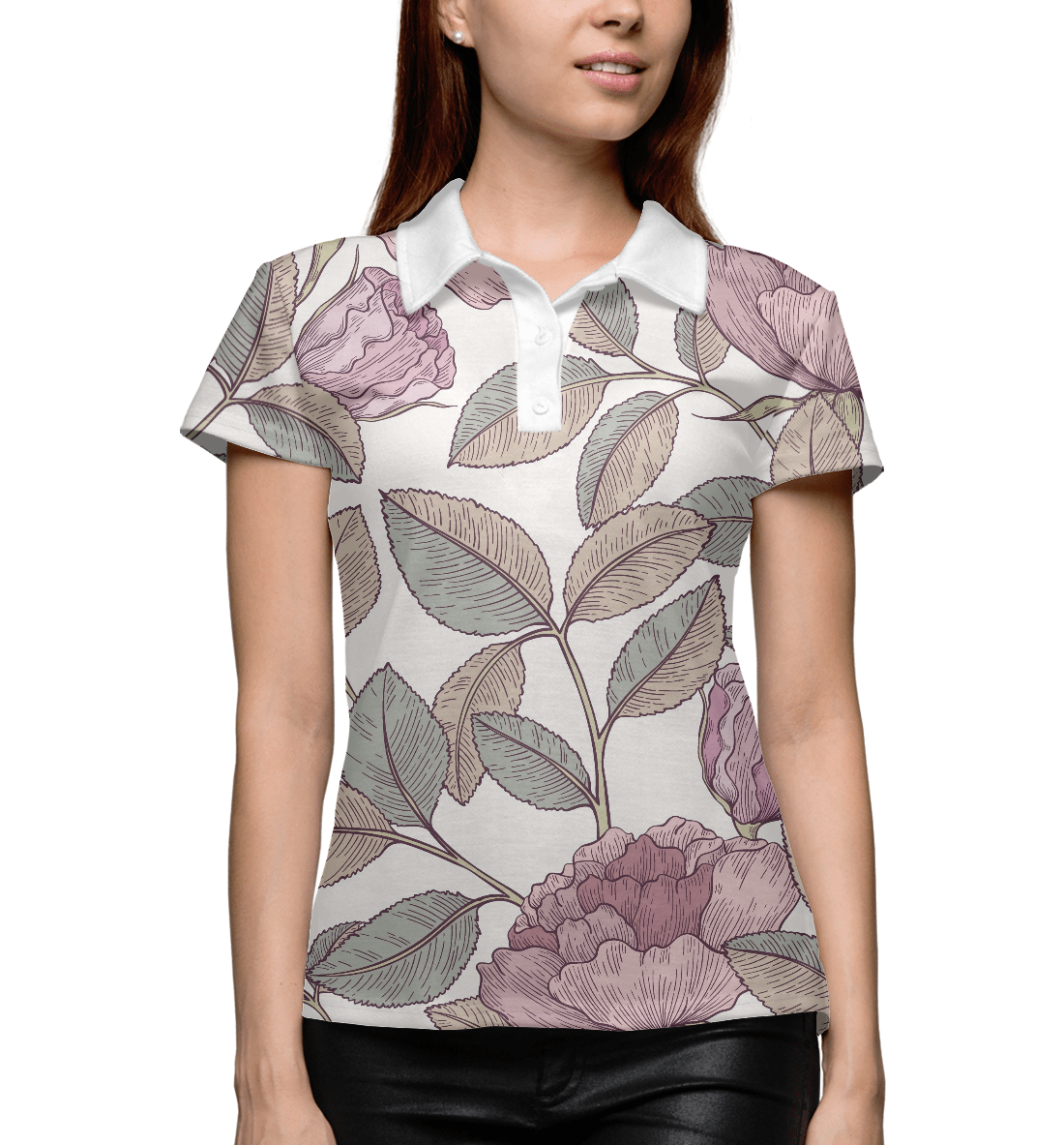 Женское поло с принтом «Цветы с листвой»