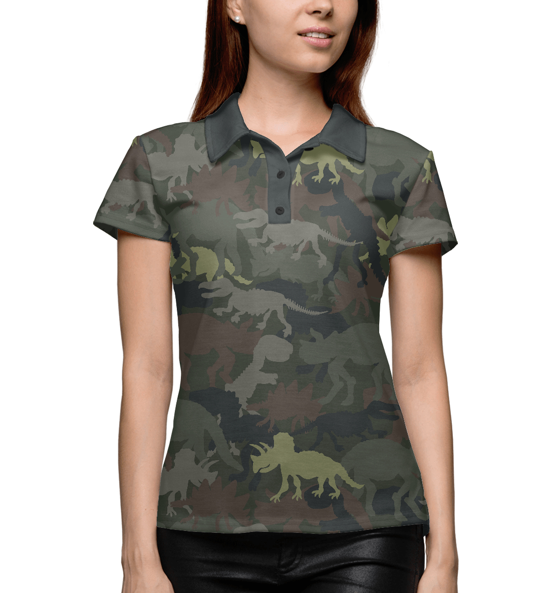 Женское поло с принтом «Динозавры хаки»