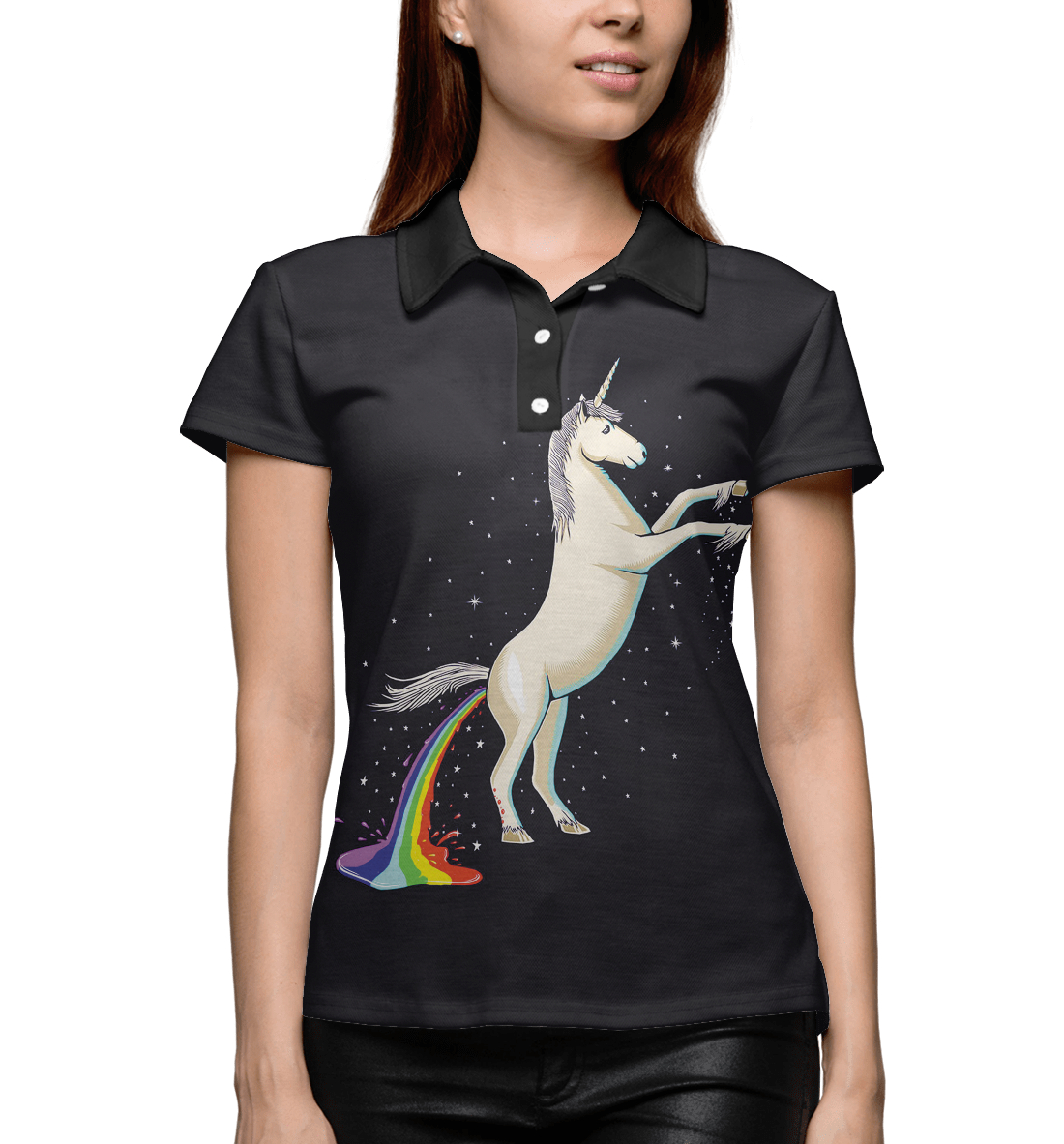 Женское поло с принтом «Единорог и радуга»