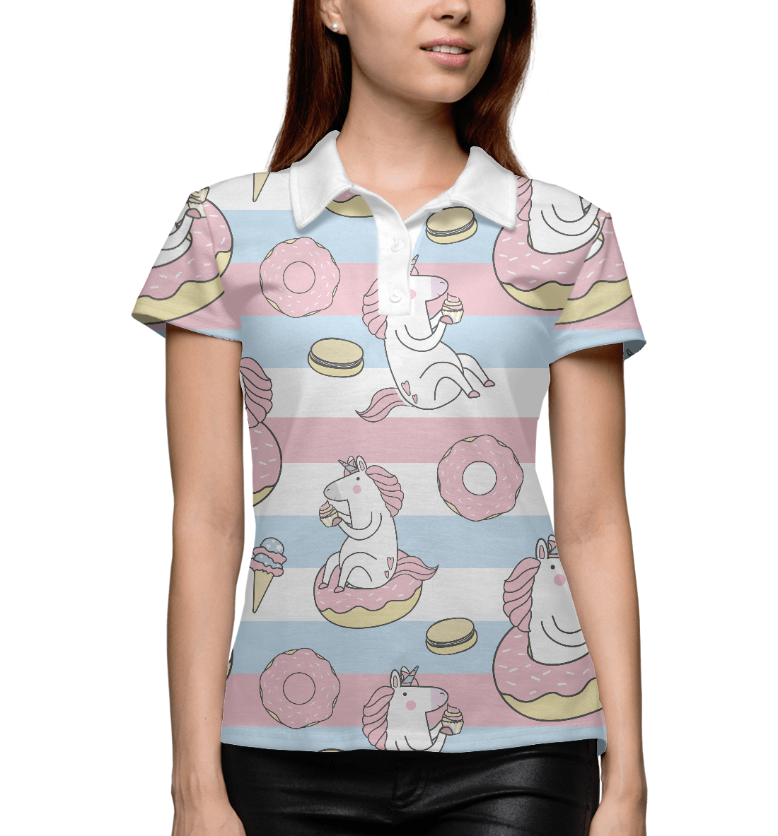 Женское поло с принтом «Единорог и сладости»