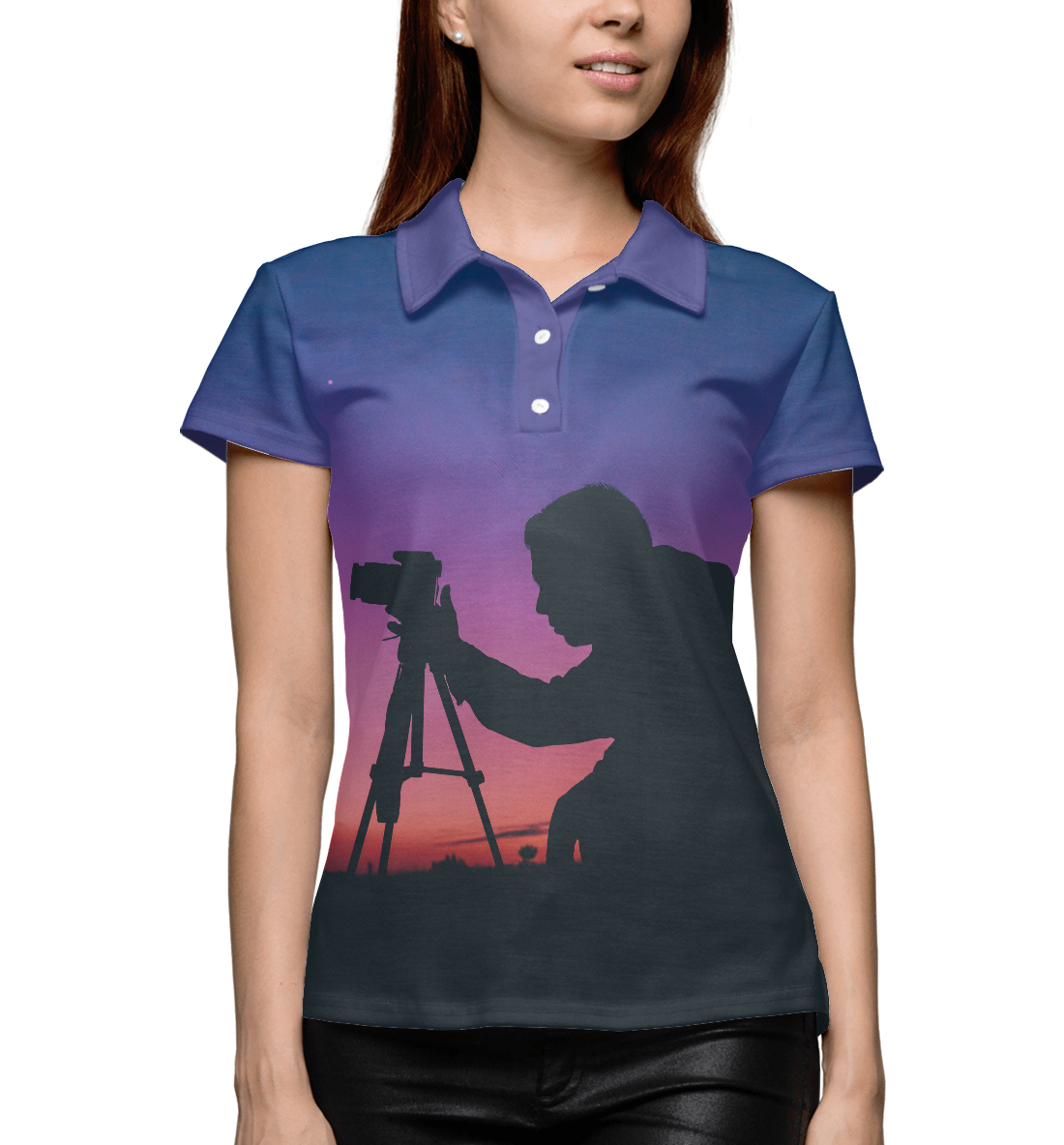 Женское поло с принтом «Фотограф на закате»