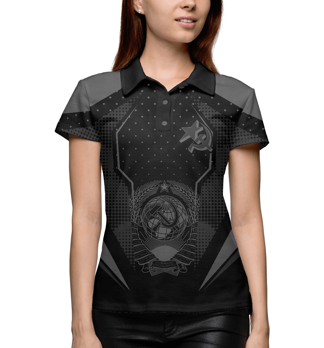 Женское поло с принтом «Герб СССР на абстрактном фоне»