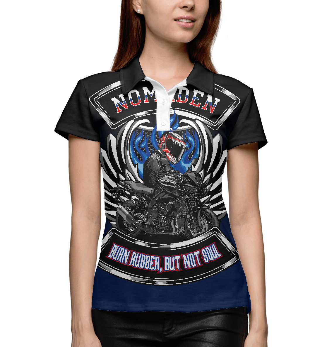 Женское поло с принтом «Жги резину, но не душу»
