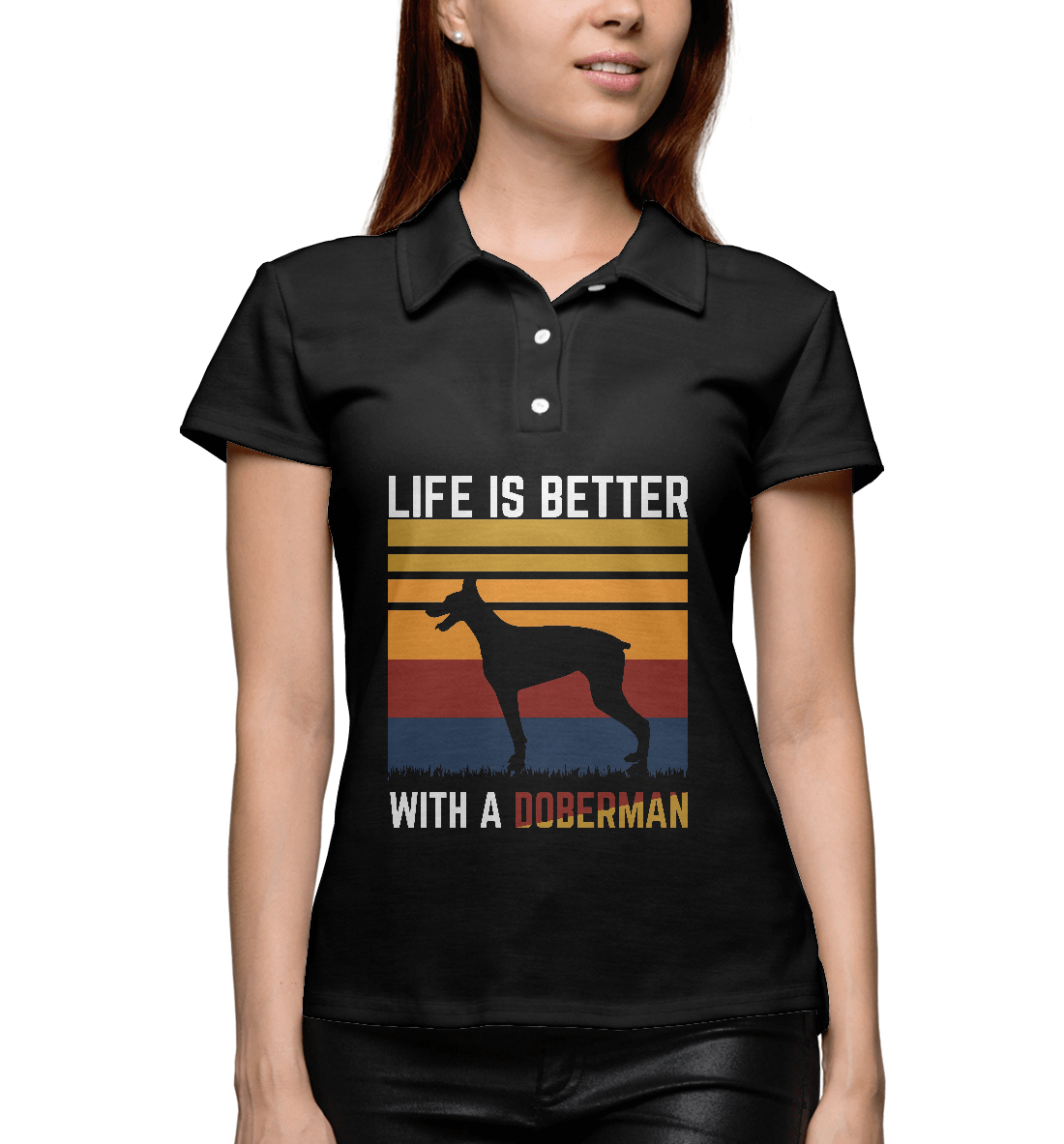 Женское поло с принтом «Жизнь лучше с доберманом»