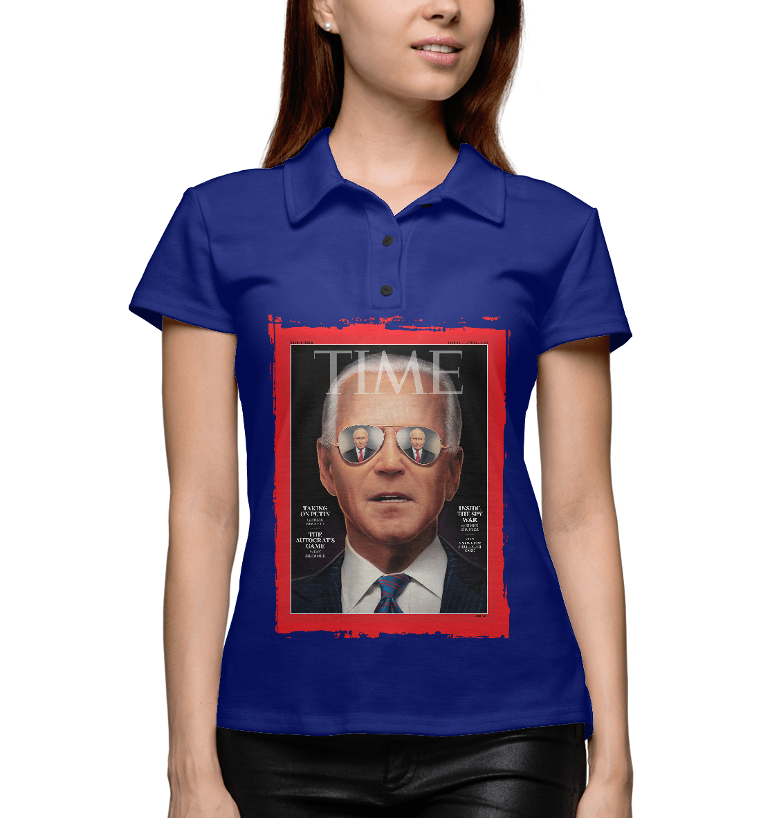Женское поло с принтом «Журнал Тайм, Байден - Путин»