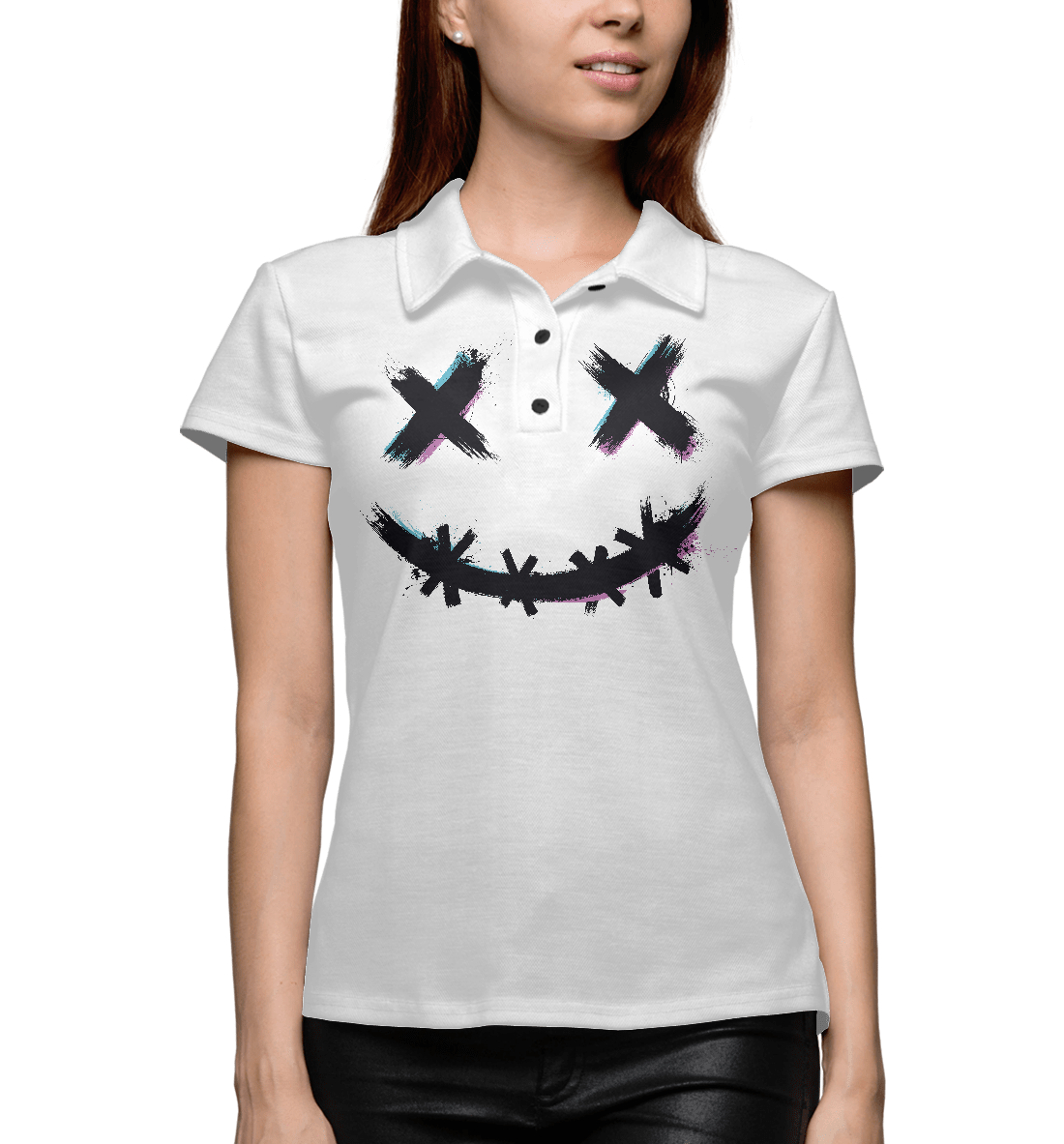 Женское поло с принтом «Glitch Smile»