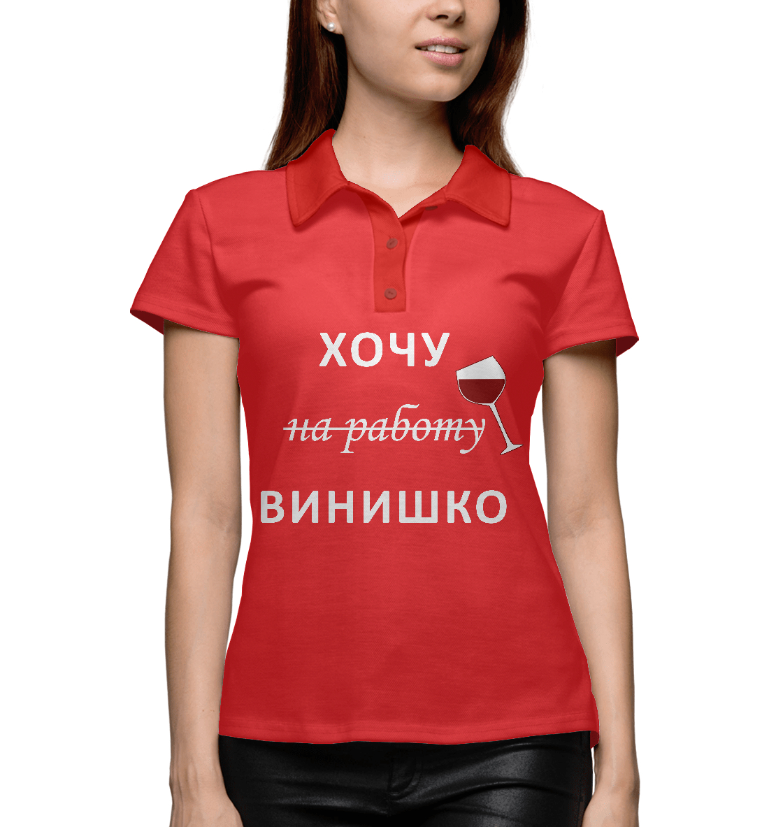 Женское поло с принтом «Хочу винишко»