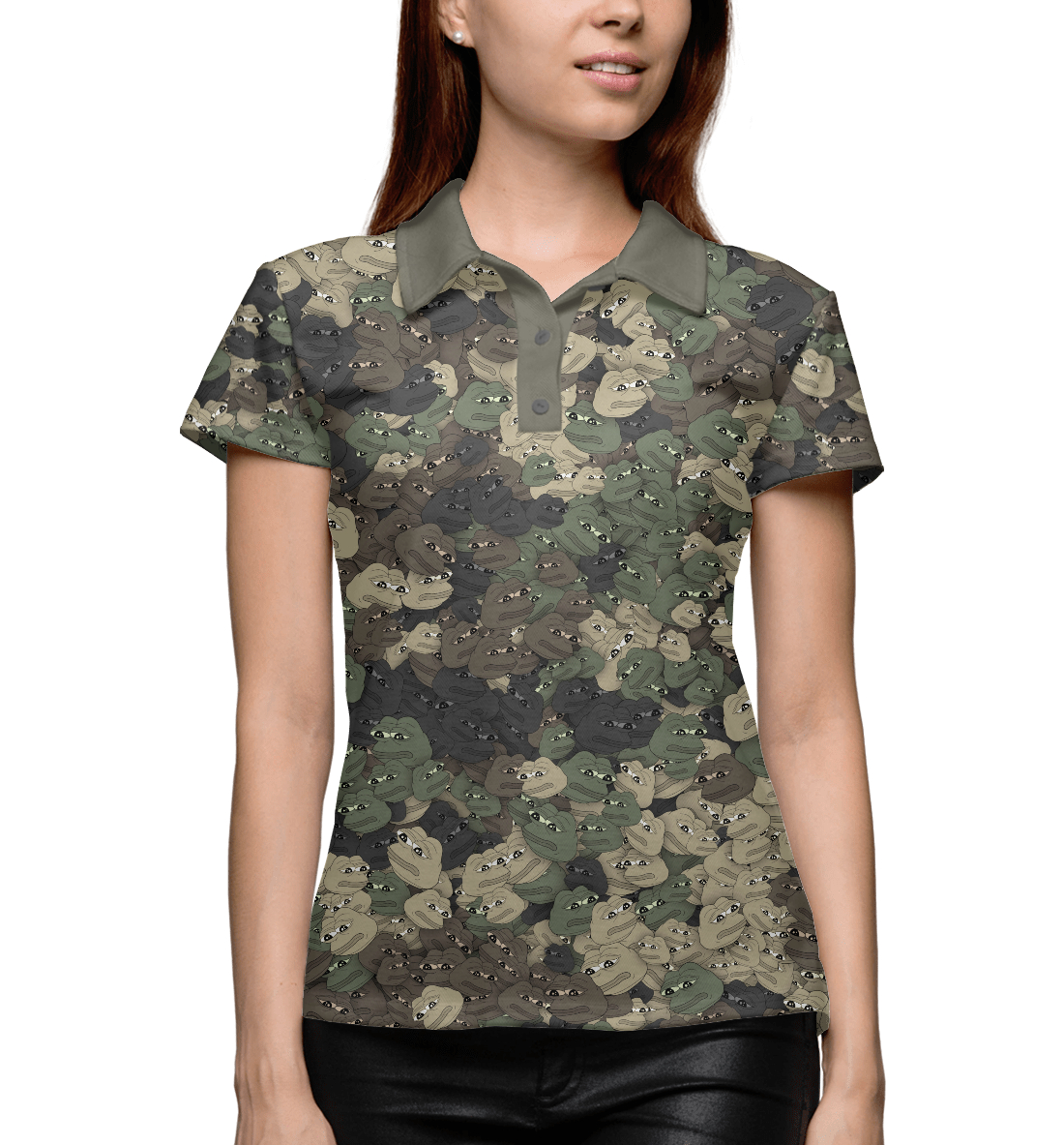 Женское поло с принтом «Камуфляж с грустными лягушками»