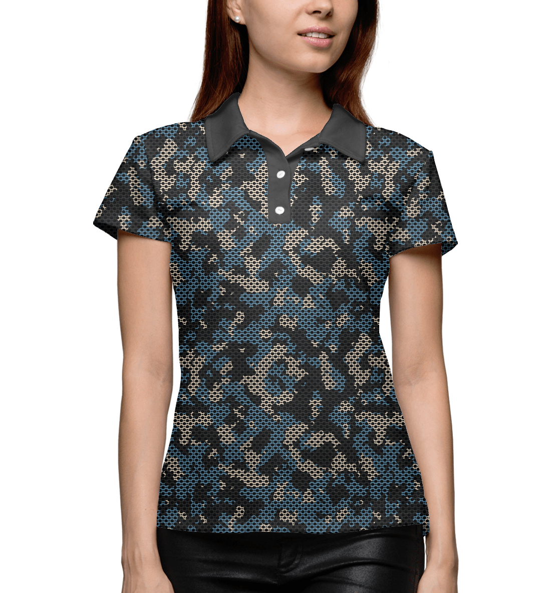 Женское поло с принтом «Камуфляж Синей Расцветки»