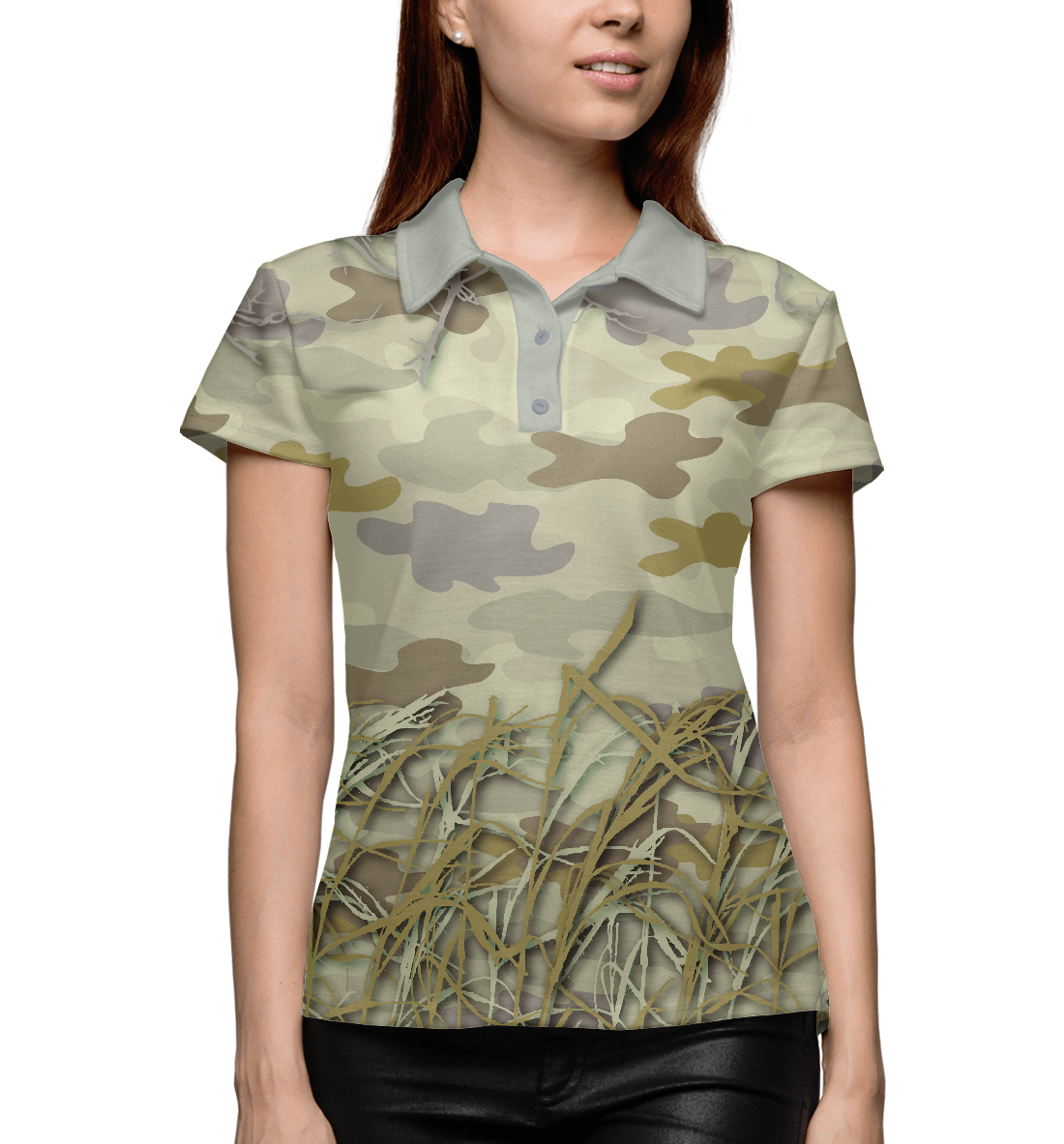 Женское поло с принтом «Камуфляж Тихий камыш»