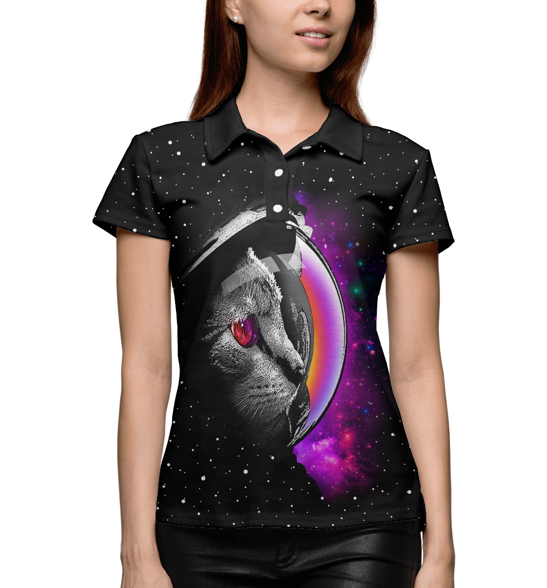 Женское поло с принтом «Космический кот»