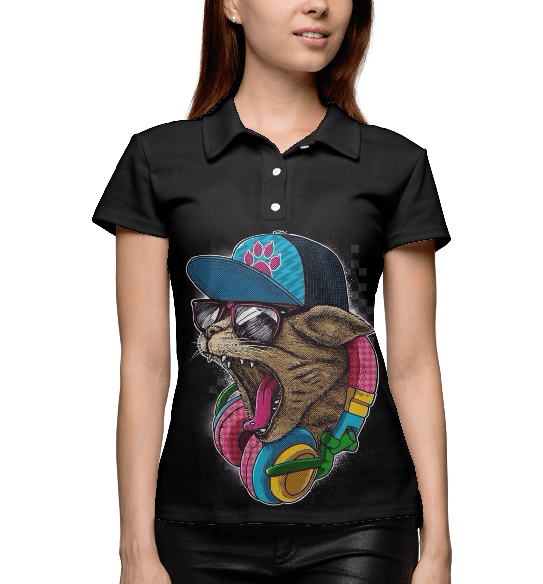 Женское поло с принтом «кот в кепке»