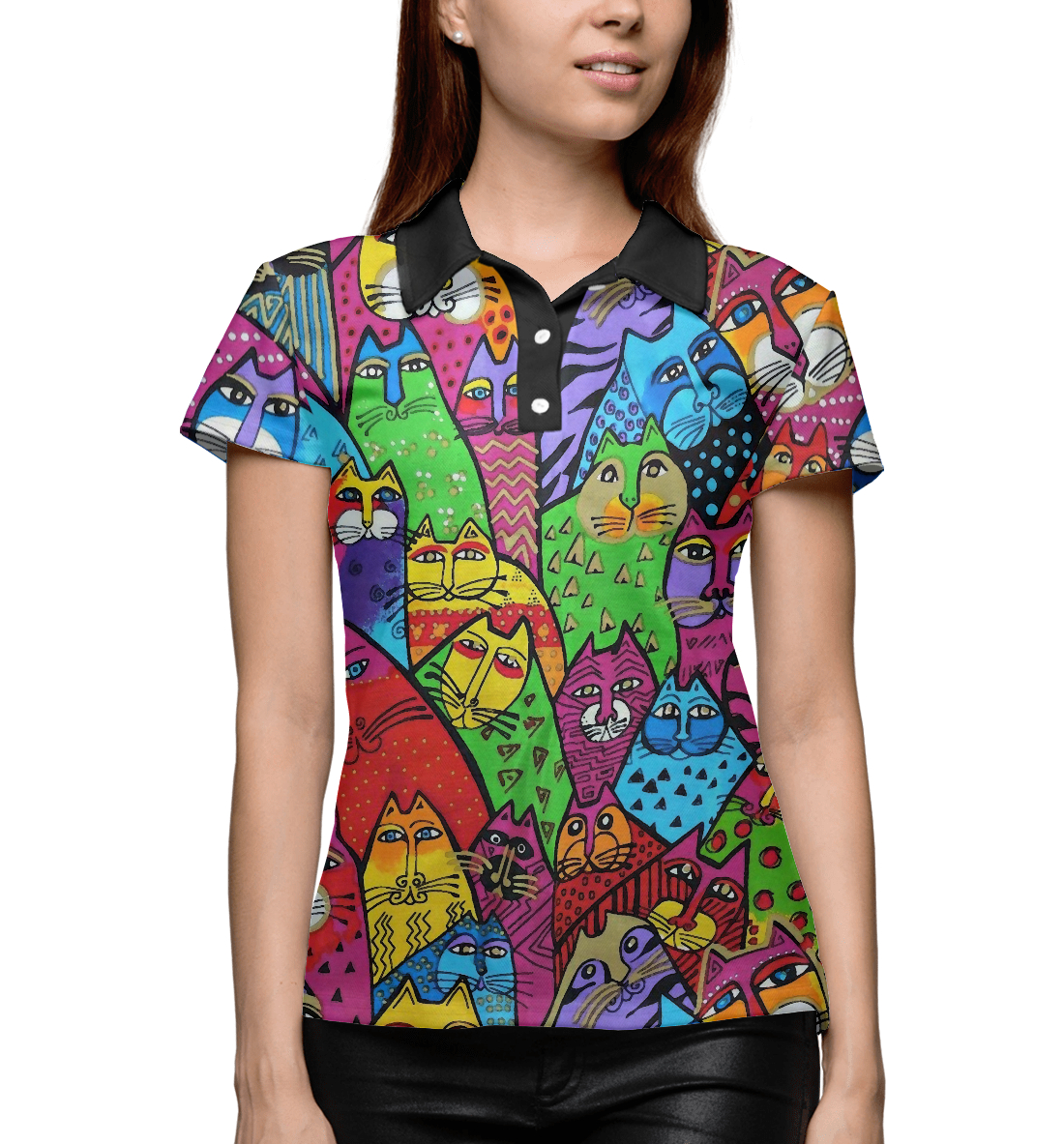 Женское поло с принтом «Котики разноцветные»