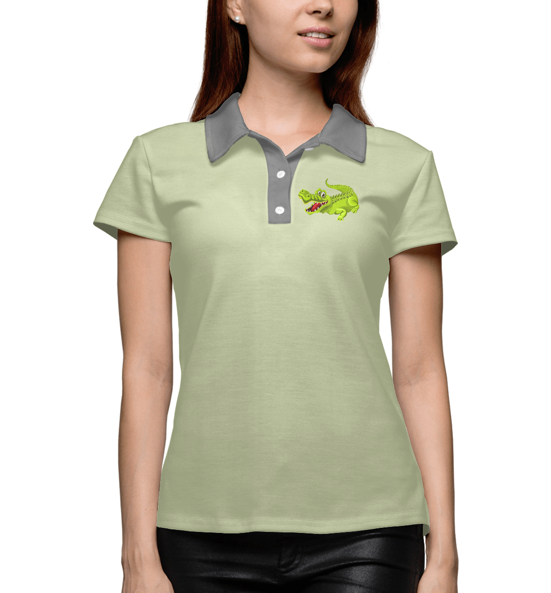 Женское поло с принтом «Крокодил на салатном фоне crocodile»