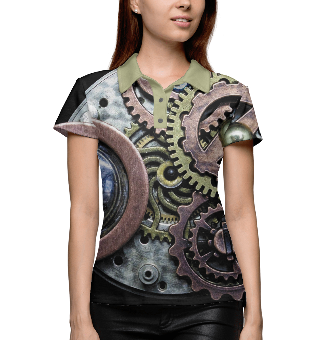 Женское поло с принтом «Mechanical composition / Steampunk»