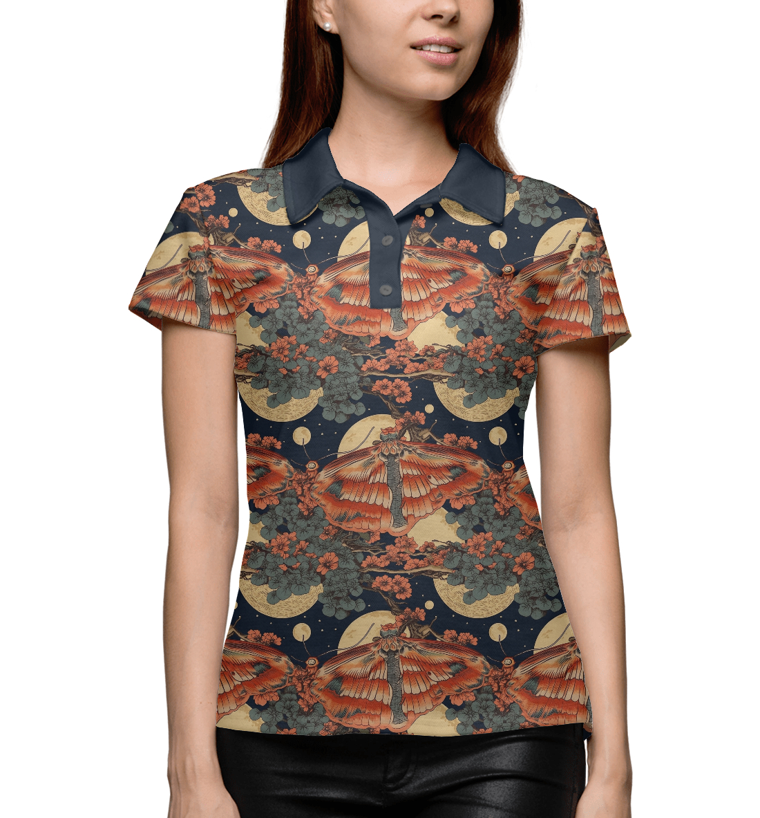 Женское поло с принтом «Мотыльки и луна. Япония.»