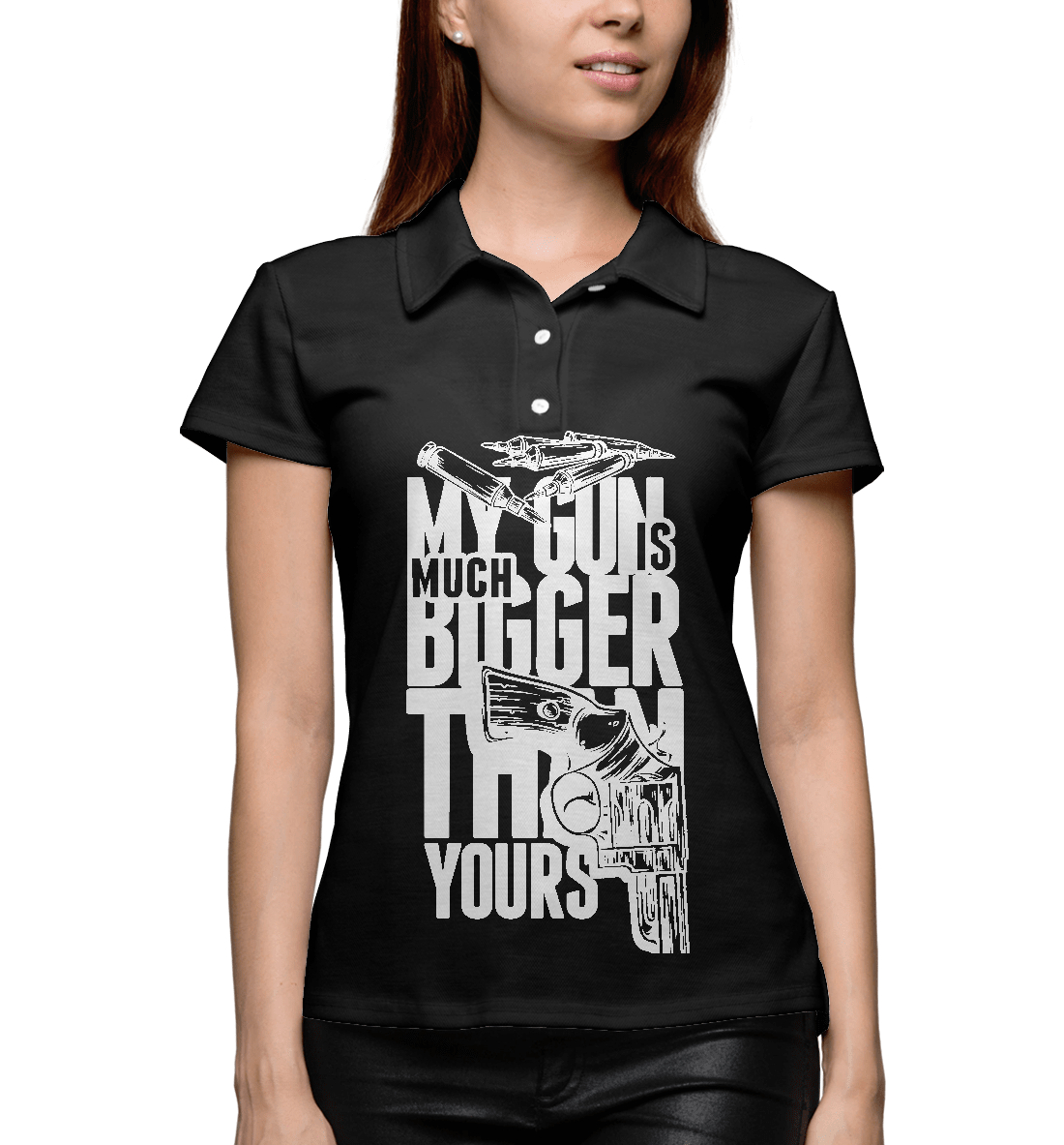 Женское поло с принтом «Мой Пистолет Больше 3»