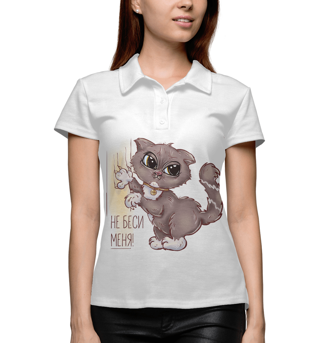 Женское поло с принтом «Не беси котика»