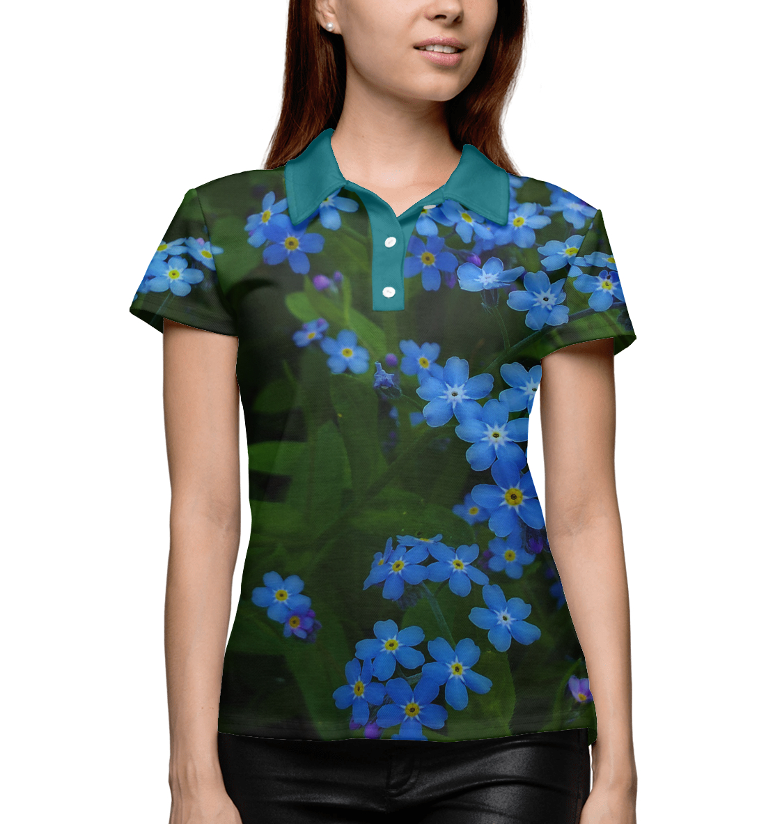 Женское поло с принтом «Незабудки»