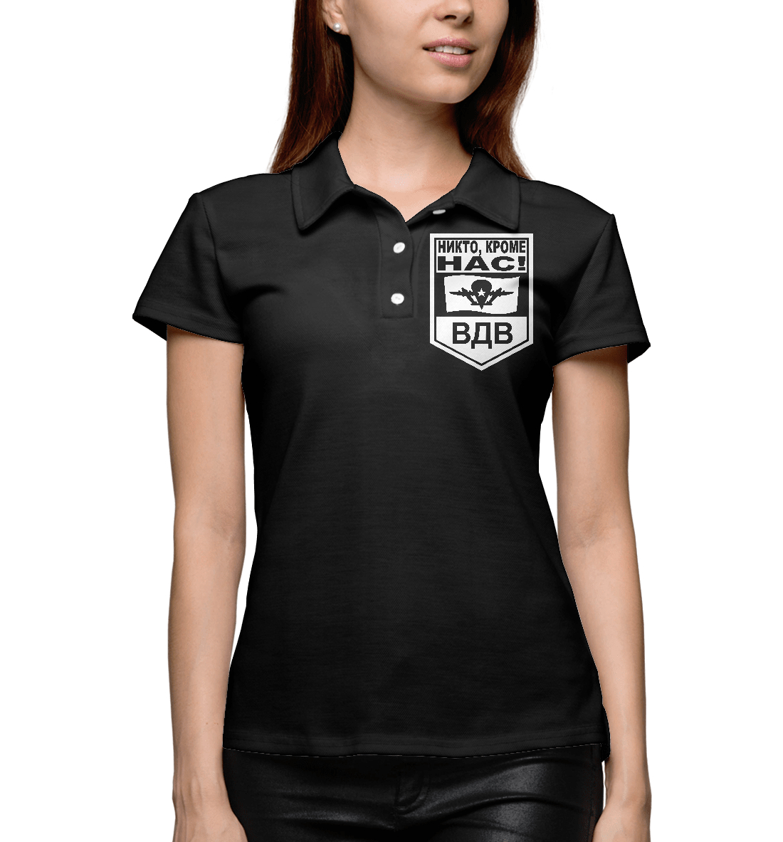 Женское поло с принтом «Никто, кроме нас! ВДВ»