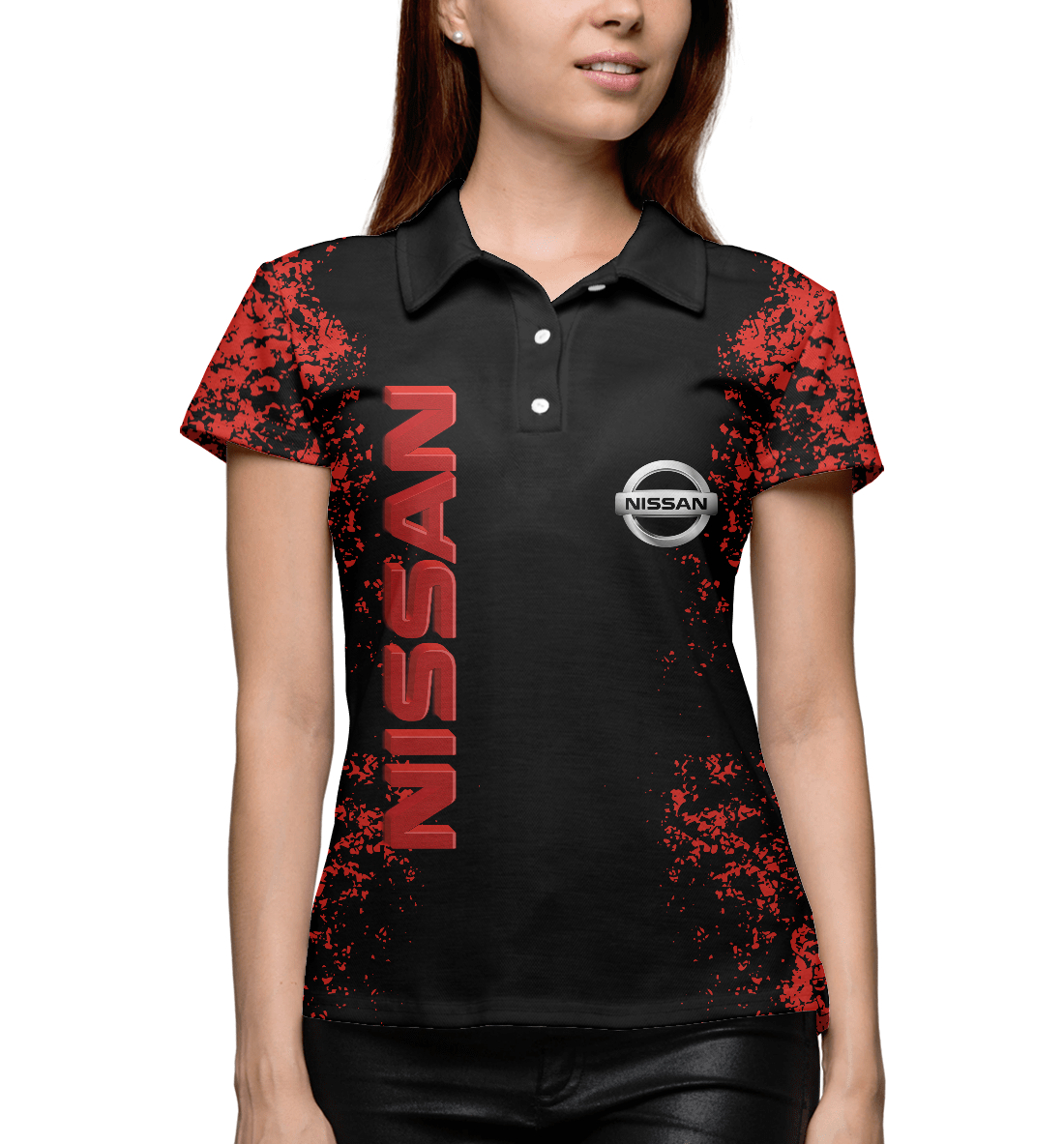 Женское поло с принтом «Nissan - красная краска»