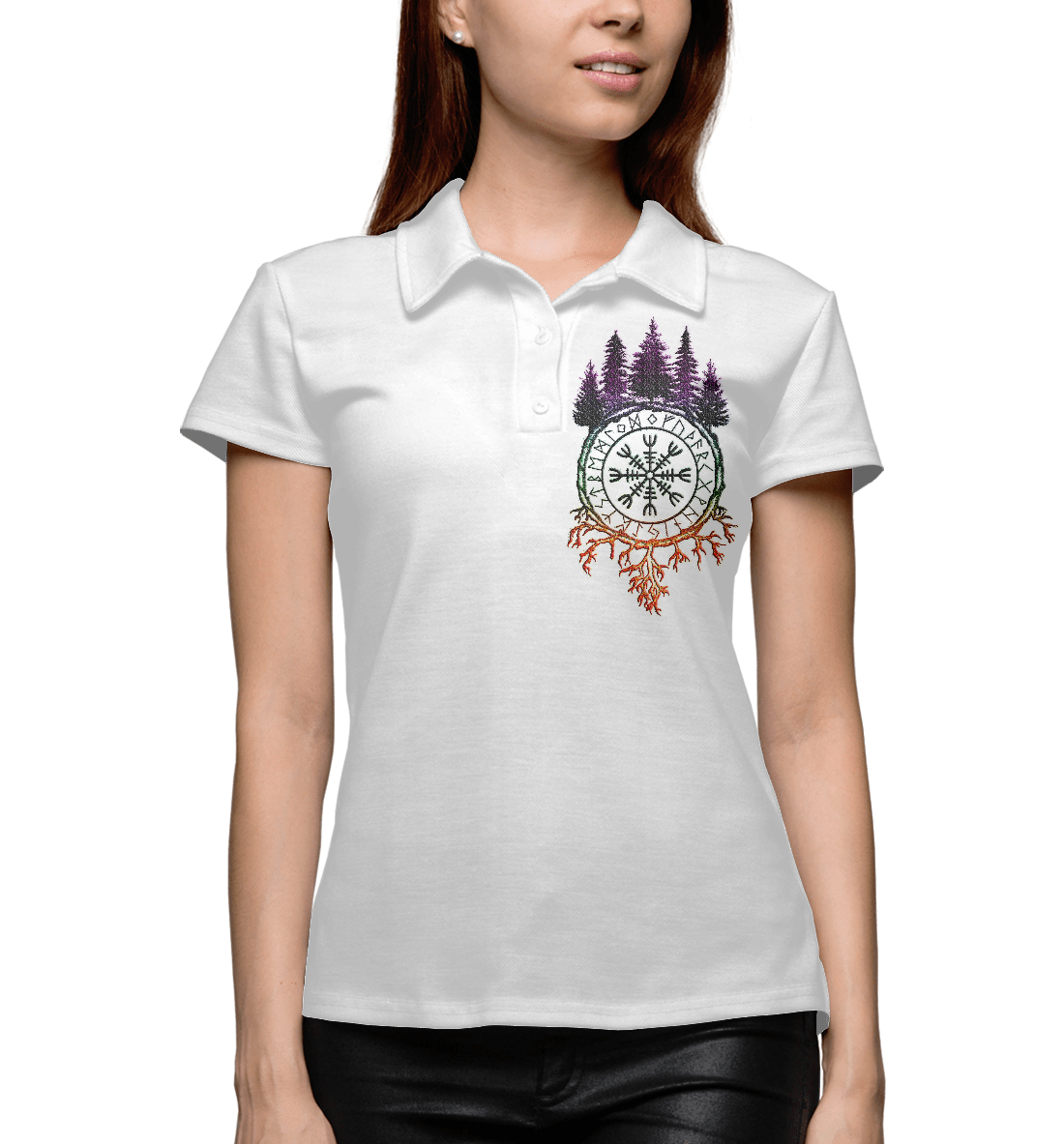 Женское поло с принтом «Оберег рун на груди»