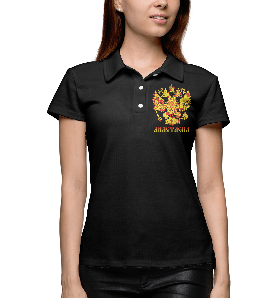 Женское поло с принтом «Орел в стиле хохломы – Анастасия»