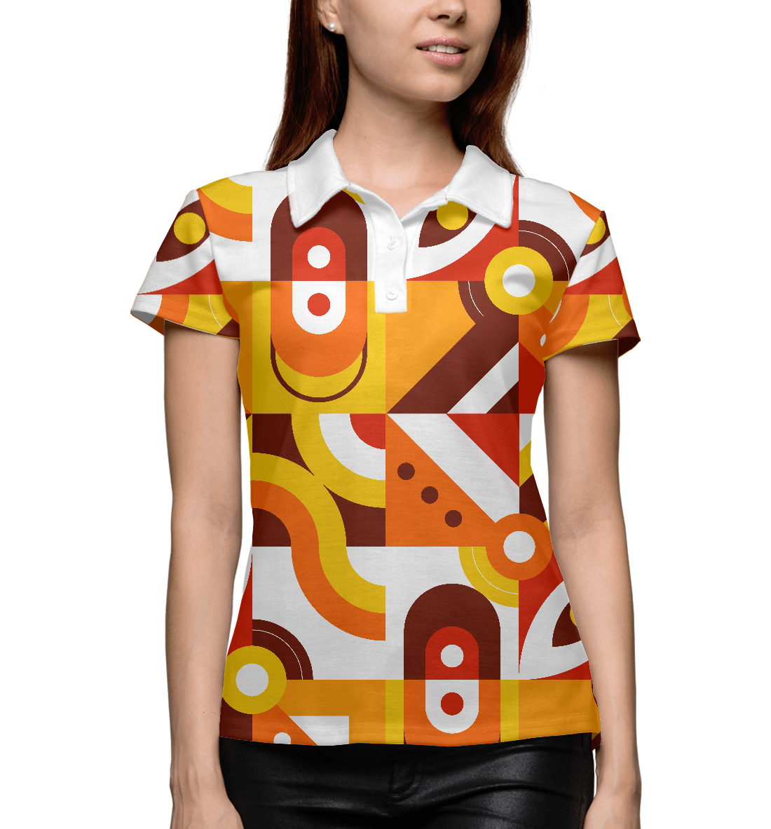 Женское поло с принтом «Pattern - retro orange»