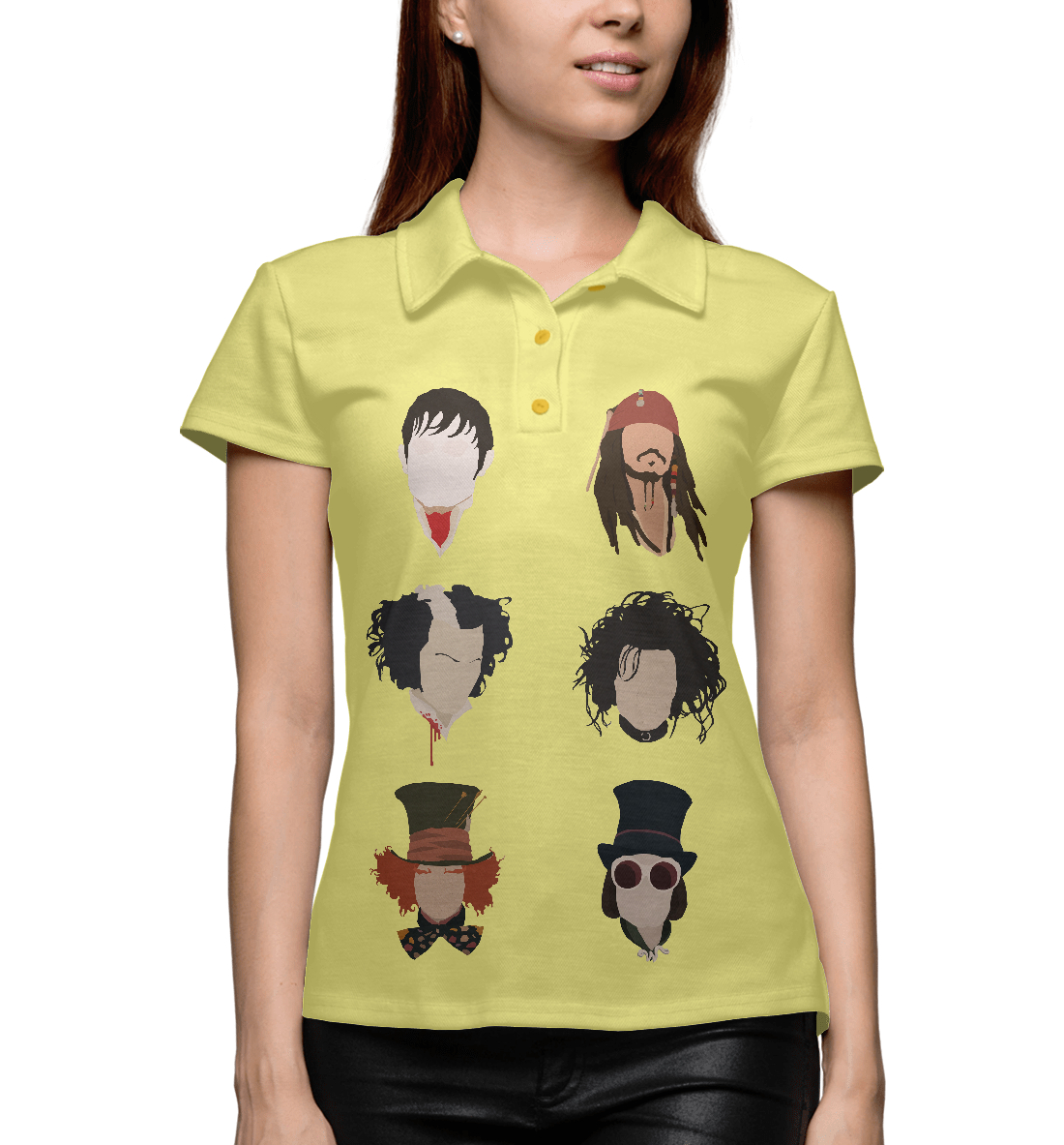 Женское поло с принтом «Персонажи Джонни Деппа»