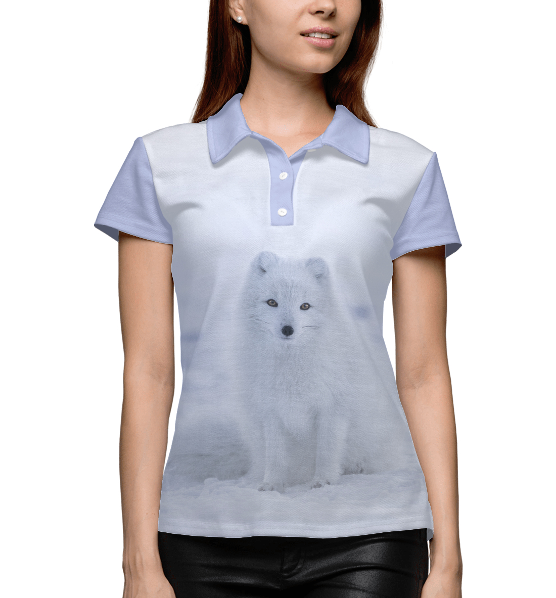 Женское поло с принтом «Полярная лиса и снег»