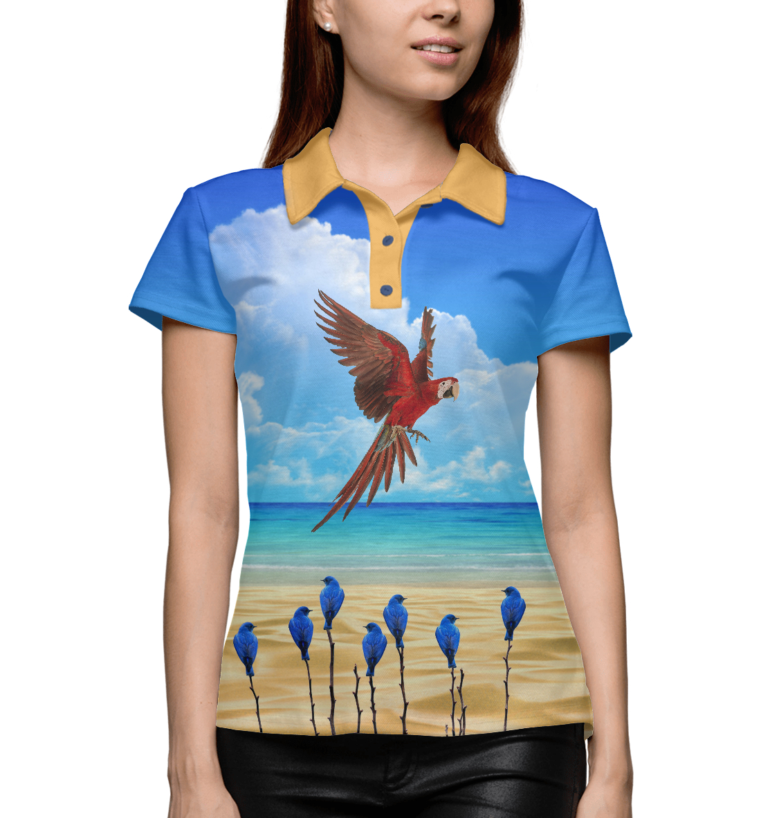 Женское поло с принтом «Попугай»
