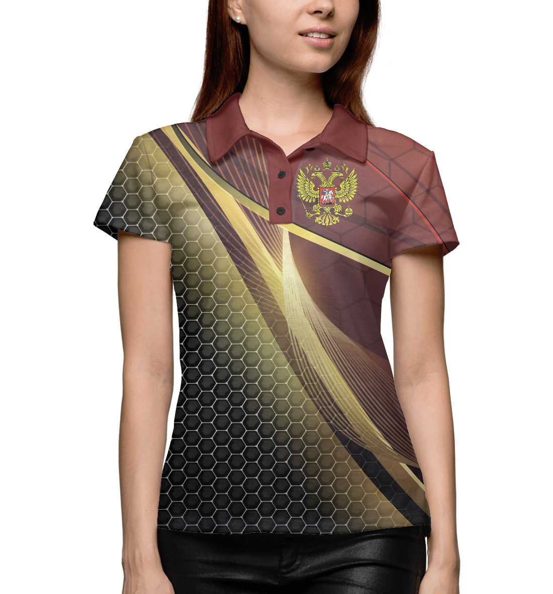 Женское поло с принтом «Russia Sport: Red and Black»