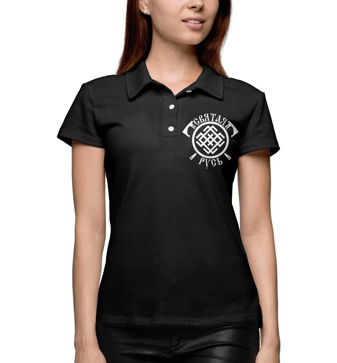 Женское поло с принтом «Русь с топорами»