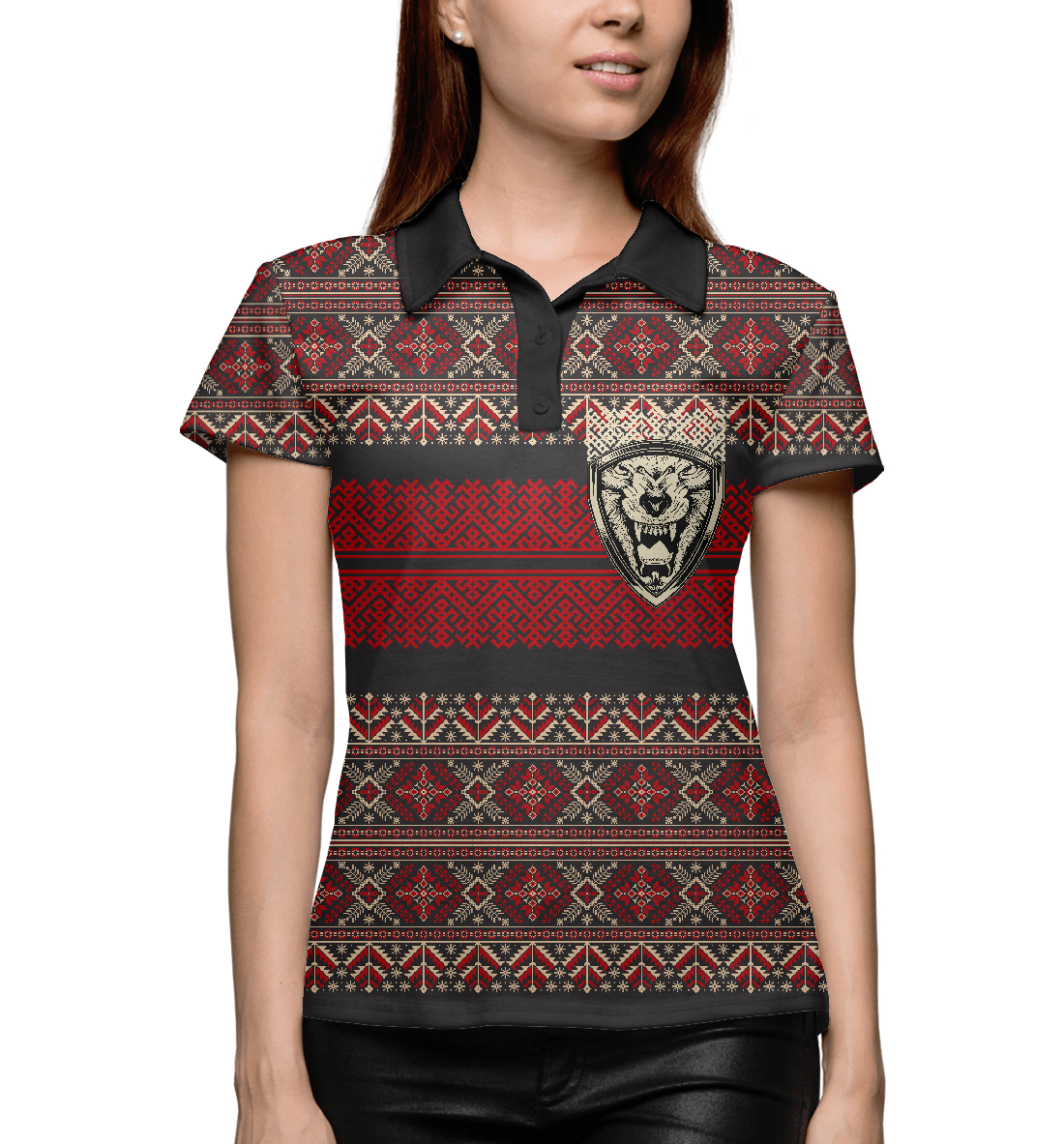 Женское поло с принтом «Симаргл в узорах»